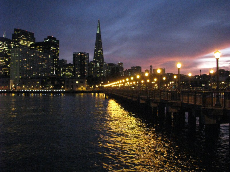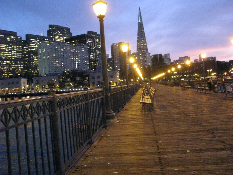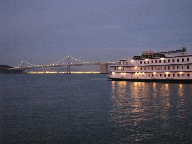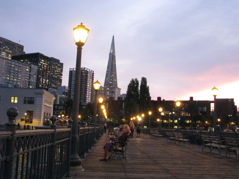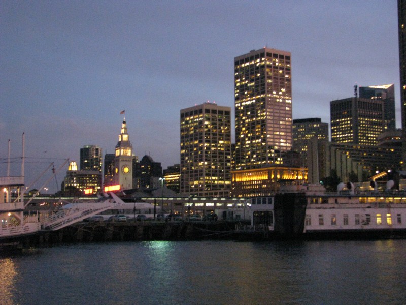 Scattate alcune foto alla baia, partiamo alla volta di San Francisco dove arriviamo al tramonto attraversando il mitico ponte Golden Gate, la nostra visita a San Francisco sarà molto breve, avendo già visitato la città nel 2007, ci limitiamo a passeggiare lungo i Pier ed a scattare foto lungo il molo (dove troviamo anche una fotomodella che fa un servizio fotografico). Scendiamo fino al Pier39 dove ci sono i leoni di mare, dopo aver visto i leoni e fatto un giro per i vari negozi (ricordo quello che vende le cioccolate Ghirardelli, uno dei più caratteristici) andiamo a cena da Bubba Gump, dove ci concediamo l’ultima cena a base di granchio, lobster (non ho mai capito se è aragosta o astice) gamberetti, vongole, cozze. Il locale che si ispira al film Forrest Gump è molto simpatico, ci sono una miriade di camerieri velocissimi, sul tavolo c’è un cartello “Stop Forrest” quando vuoi fermare il cameriere “Run Forrest” quando è tutto ok, nel locale oltre a trasmettere continuamente  in TV il film sono presenti alcuni degli indumenti utilizzati nel film stesso (la maglia da Football di Forrest, il vestito da bambina e da adulta della sua ragazza ecc…)