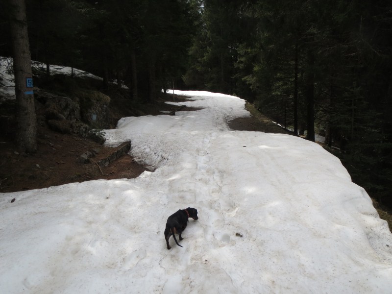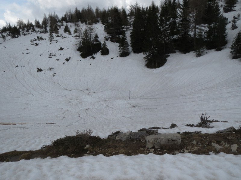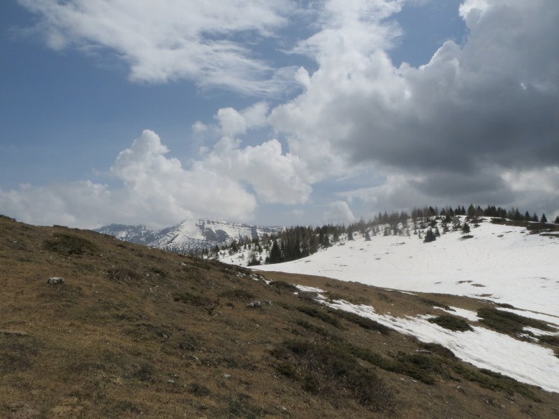 Dislivello di circa 200 metri, più che altro lunga l'escursione da Malga Marcai al confine col Veneto, circa 3 km con un dislivello di soli 100 metri. Presenti all'escursione, Carlotta, Francesca e Giampaolo.