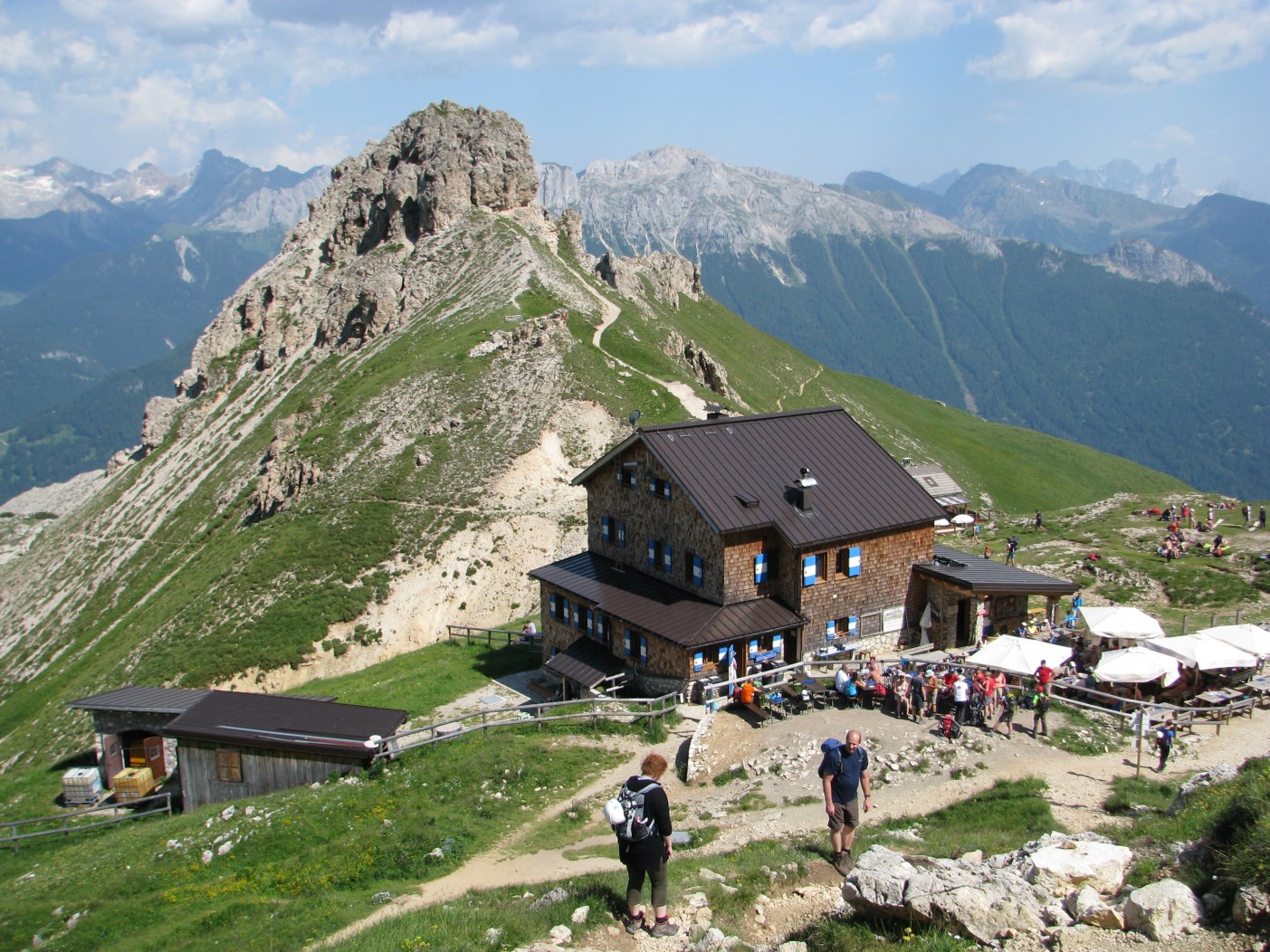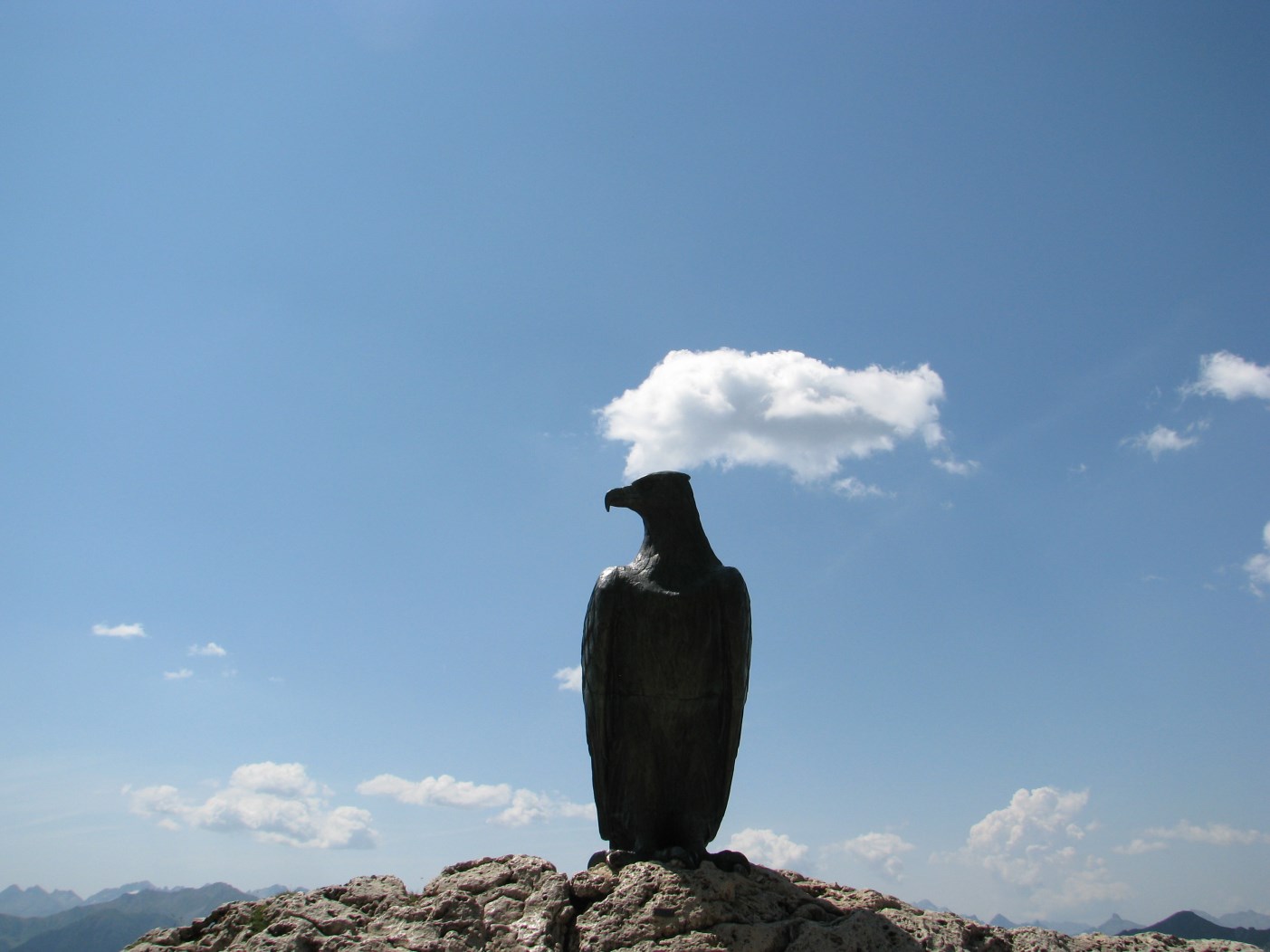 Dopo aver preso la seggiovia che ci porta ai 2127 metri del rifugio Paolina saliamo fino all’aquila del Christomannos (un monumento di bronzo alto tre metri che domina Val di Fassa e Val d’Ega), per poi arrivare fino al rifugio Roda di Vael. Tentiamo di mangiare al Rifugio Roda di Vael, ma dopo aver attesa invano 20 minuti sotto il sole ci spostiamo alla vicina Baita Pederiva, dove veniamo serviti subito e mangiamo molto bene.