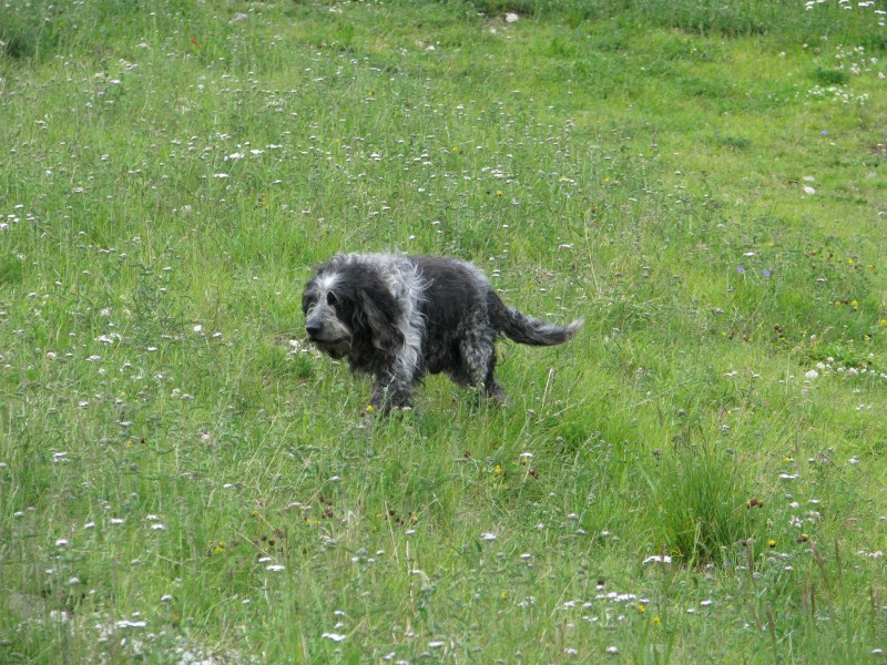 Dopo aver preso la funivia che da Alba di Canazei porta ai 2142 metri della stazione a monte del Ciampac (non proprio economica, 12 Euro a crapa andata e ritorno). Da lì saliamo ai 2170 metri del rifugio Tobià del Giagher dove ci fermeremo al ritorno a mangiare la loro specialità (la porchetta allo spiedo), il rifugio ha un recinto dove ci sono delle belle capre, galline, anatre, una mamma asinello col piccolino, un bel gallo, le anatre hanno anche un piccolo stagno a disposizione con acqua corrente.