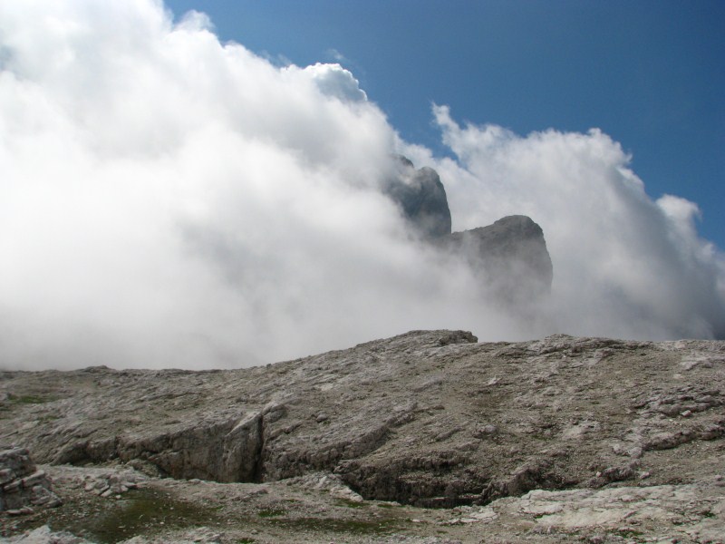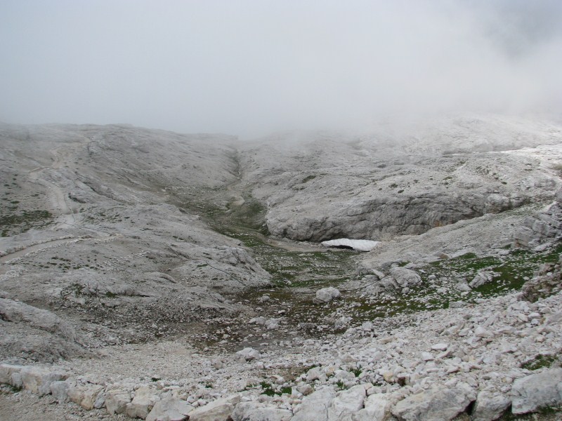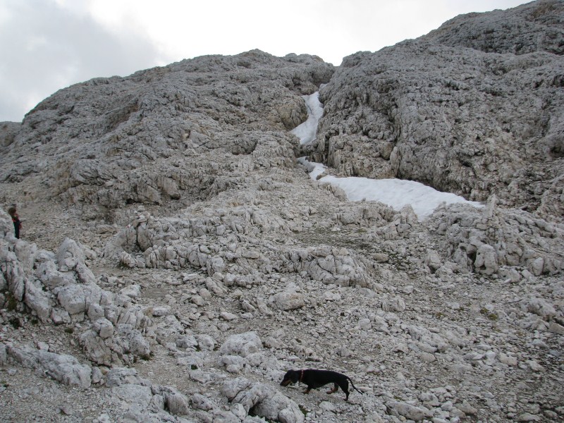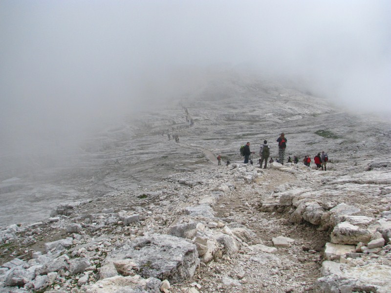 Dal versante risaliamo verso sud dove ci fermiamo ad osservare dei bellissimi coralli fossili, per poi rientrare al rifugio Pedrotti dove troviamo una ressa incredibile (c'era una comitiva di ben 70 persone).
