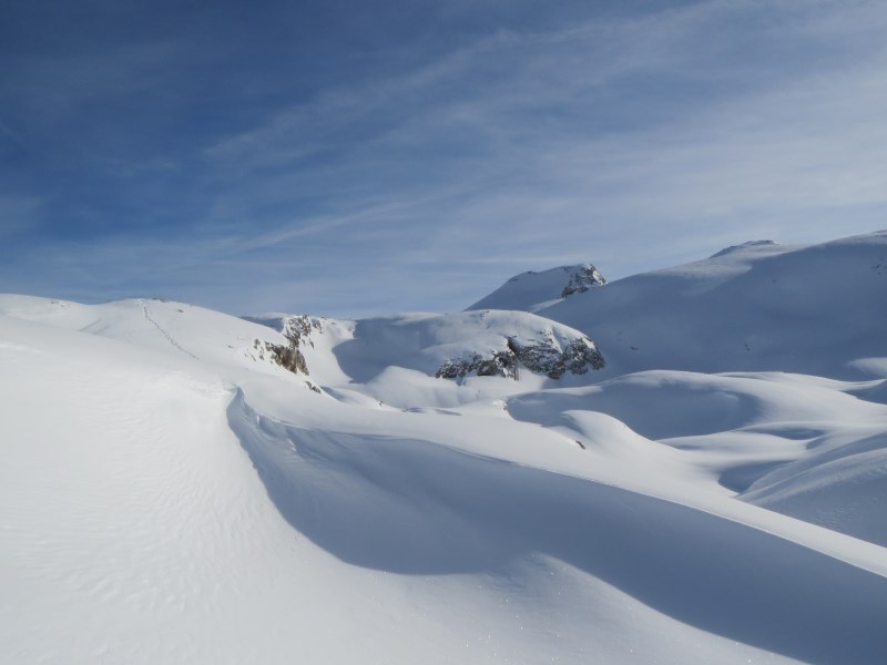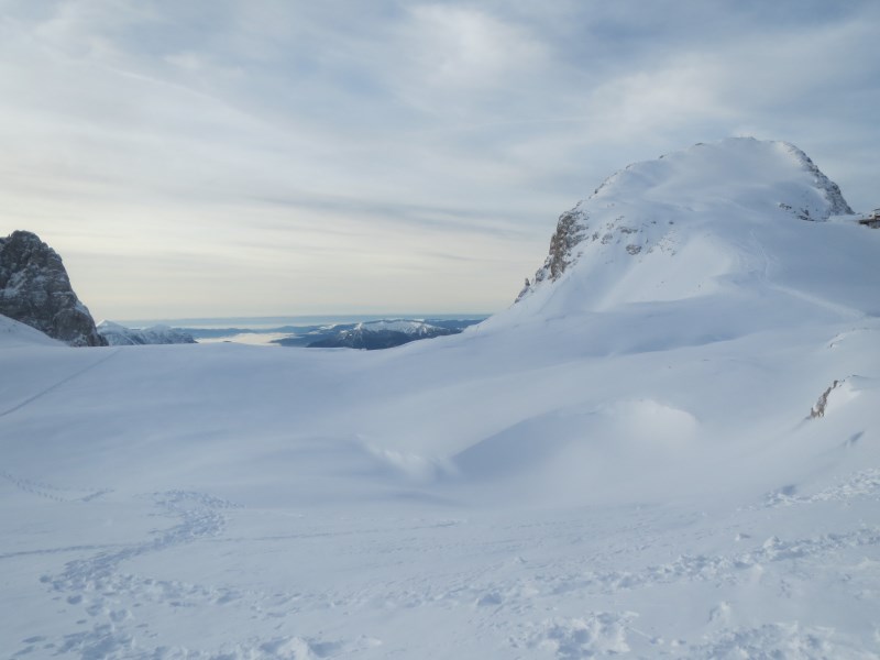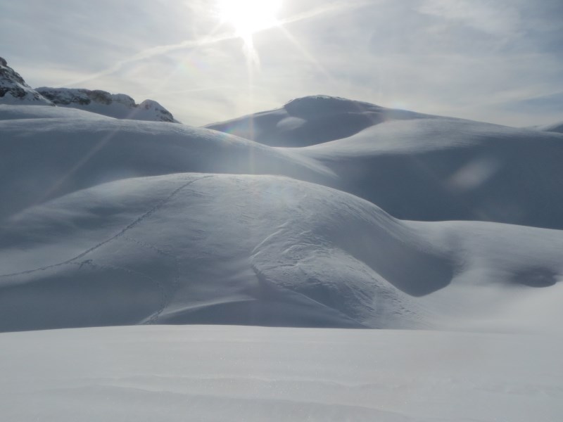 Salito con la funivia da San Martino di Castrozza, con le ciaspole raggiungo il "gruppo", arrivato nel frattempo con l'elicottero al rifugio Pedrotti, da lì raggiungiamo con le ciaspole la sella di outflow di Busa di Manna, dove giriamo gran parte del video. In seguito arriverà l'elicottero che porterò a Lago di Manna Effimero per scaricare i dati termometrici da un'installazione termometrica installata a fine settembre con l'amico Stefano e gli ziie Marie Claude e Guy.
