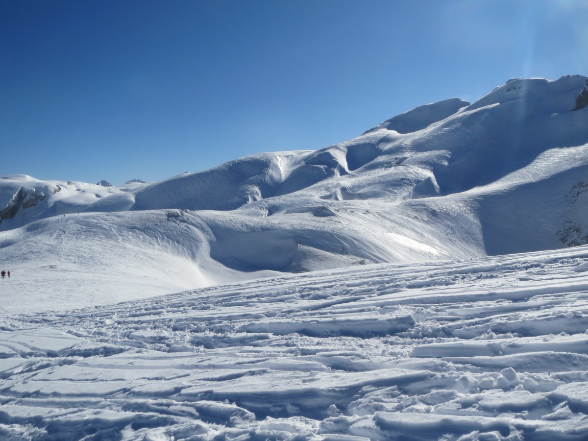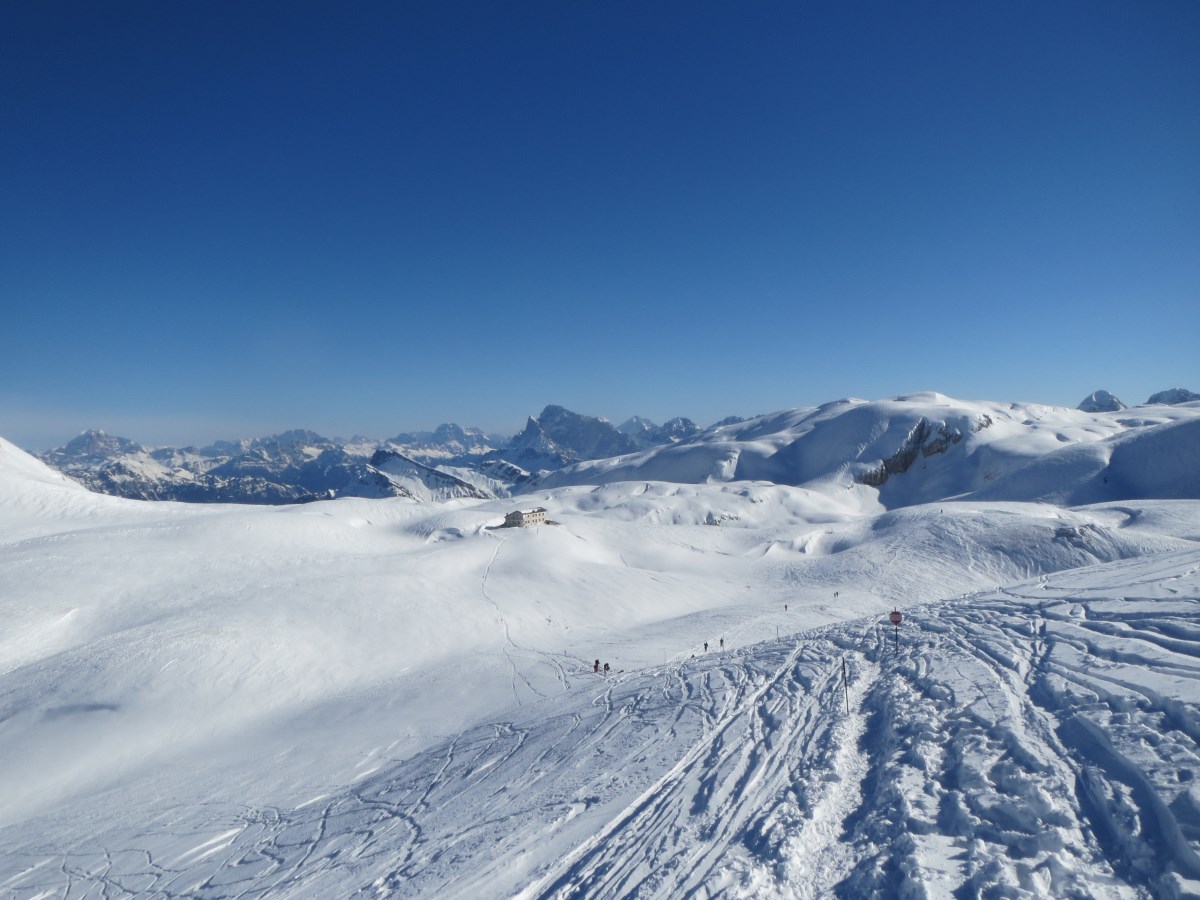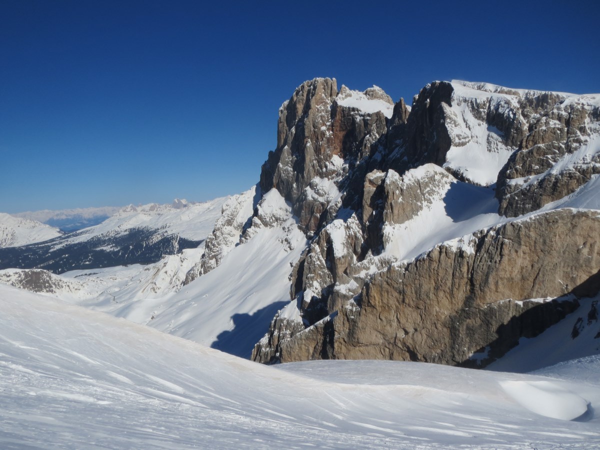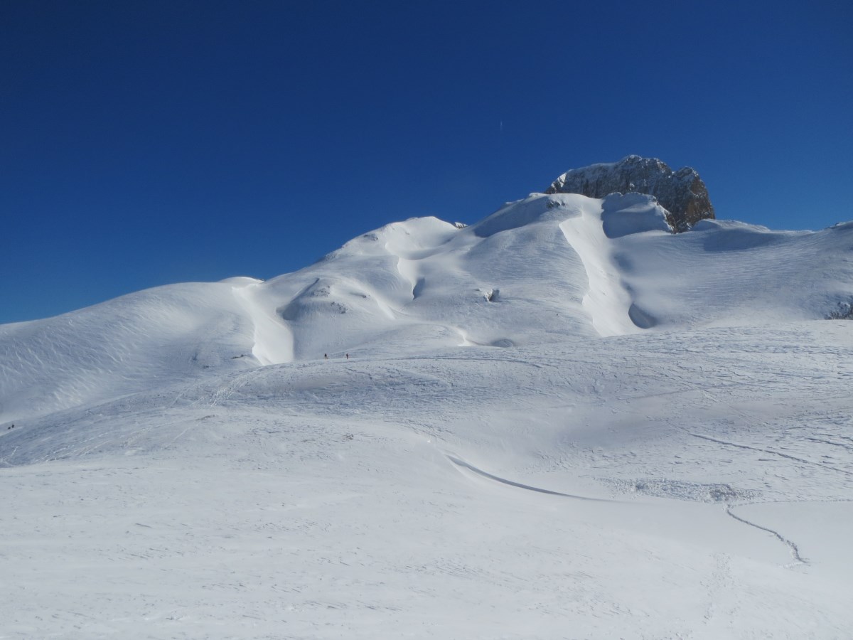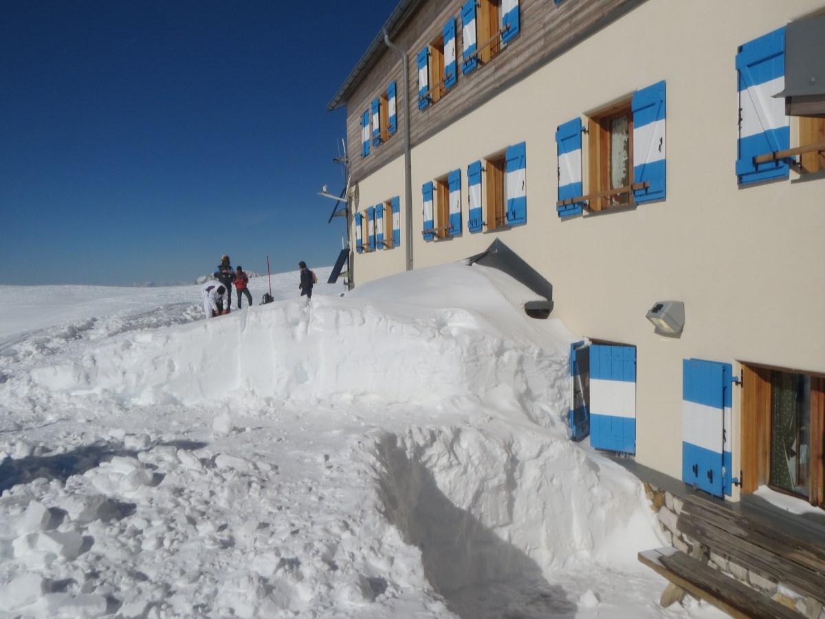 La giornata è una di quelle che difficilmente si possono dimenticare, cielo terso,neve da record, temperatura al rifugio ad ore 10.00 -8°C ma con moderate raffiche di vento.