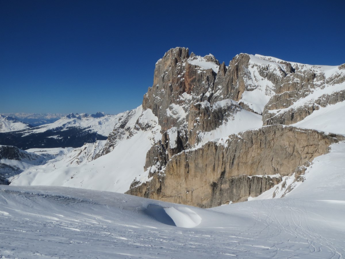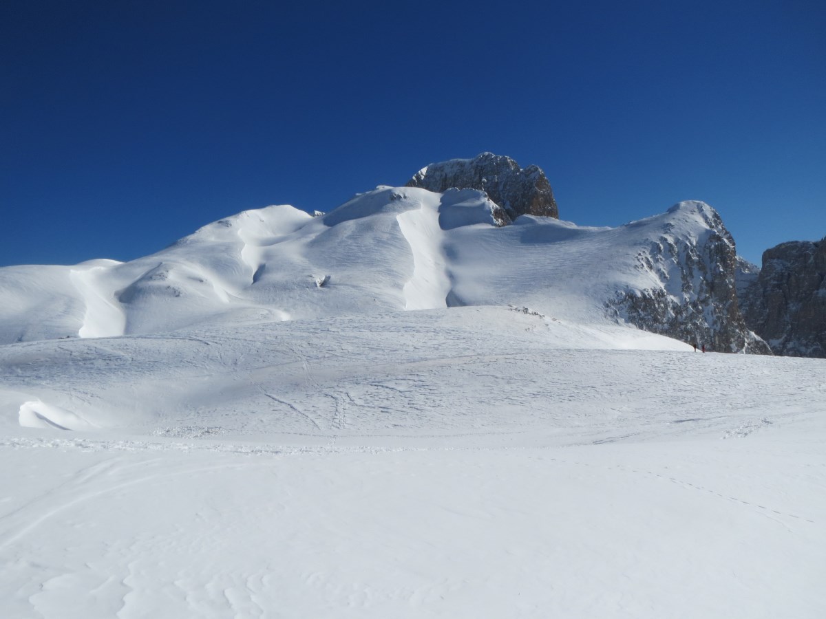 La giornata è una di quelle che difficilmente si possono dimenticare, cielo terso,neve da record, temperatura al rifugio ad ore 10.00 -8°C ma con moderate raffiche di vento.