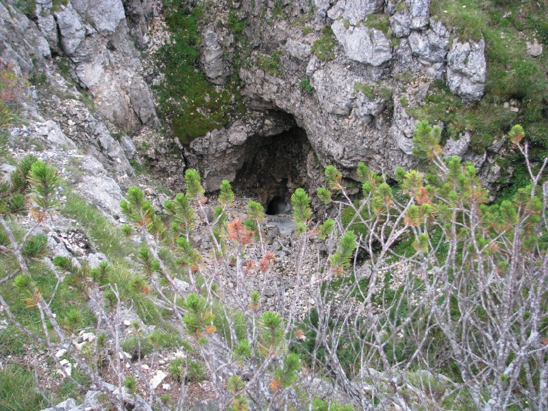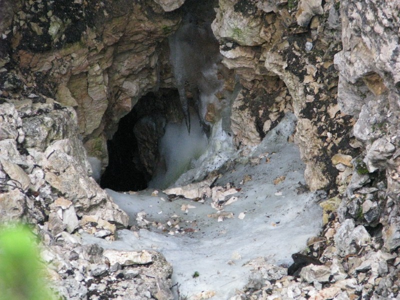 A quota 2000 sotto la cima trovo una dolina con inghiottitoio dove è presente ancora neve e ghiaccio, impressionante.
