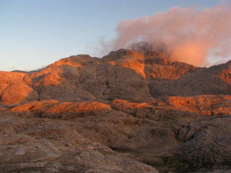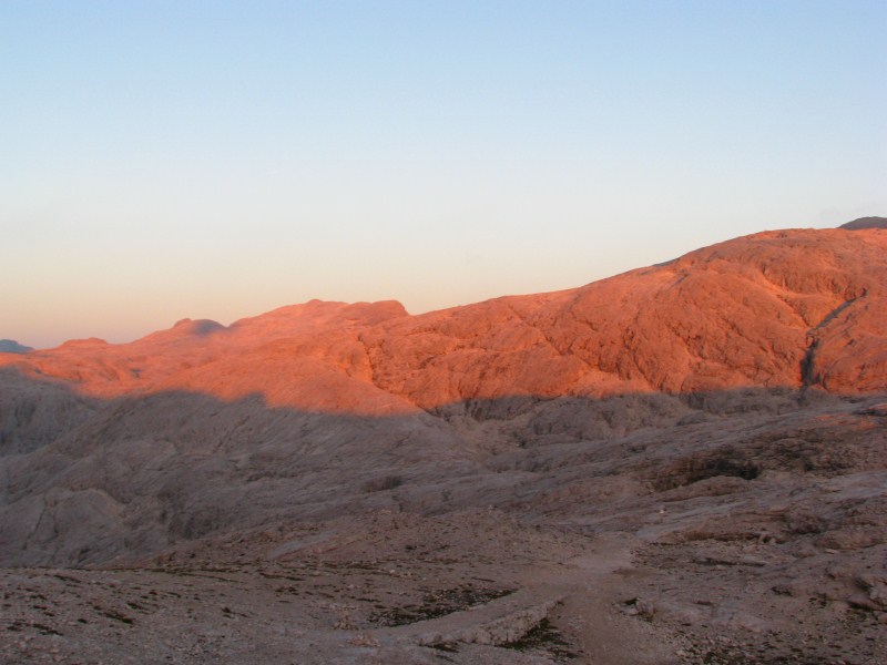 Dopo l'escursione e le installazioni (esclusa quella sotto il rifugio) siamo arrivati al Rosetta alle 16.00 circa, lì abbiamo salutato Sergio e Simone e con Stefano e Diego abbiamo effettuato l'installazione alla dolina sotto il rifugio. Alle 18.30 un'ottima cena al rifugio Rosetta (Pedrotti al Rosetta) sempre gestito ottimamente da Mariano, Roberta ed Andrea (il cocker Drago non ha mancato di venirci a salutare), cena "interrotta" per qualche minuto per osservare l'Enrosadira (il caratteristico colore delle Dolomiti al tramonto),   dopodiché siamo rimasti ad osservare le stelle ed i numerosi satelliti che ci passavano sopra la testa ed in seguito ad analizzare al PC i dati delle temperatura scaricate dai dataloggers durante il giorno (a dimostrazione dell'estate molto calda, ricordo che a Busa di Manna dal 7 luglio all'8 settembre solo un giorno, il 27/07, la temperatura è scesa sotto lo zero, ovvero a -0,5°C).