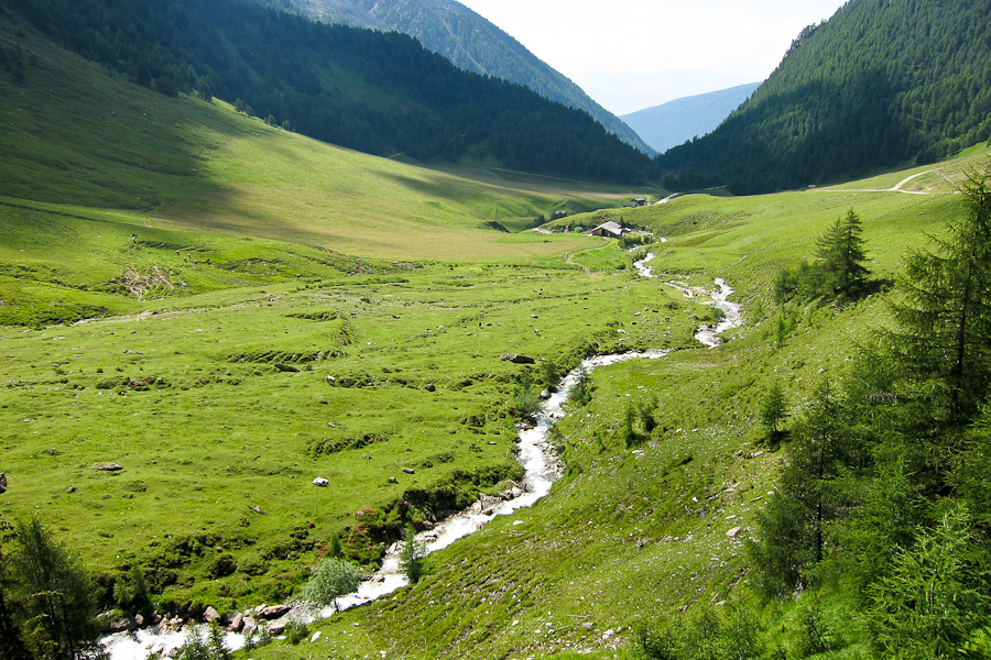 Ritrovo in quel di Bolzano per poi proseguire alla volta di Rio Pusteria, da lì si sale lungo la Val di Vals, per poi lasciare l'auto alla fine dell'abitato di Vals a quota 1396 metri, da lì abbiamo preso la navetta fino a quota 1705 metri nel bellissimo borgo alpino di Fane, una conca favolosa. Da lì in due ore circa siamo saliti ai 2272 metri del rifugio Bressanone/Brixen. Nonostante in città (Bolzano) la temperatura superasse abbondantemente i 33°C lì grazie alla quota ed alla copertura nuvolosa data dalla convezione era persino freddo a tratti.