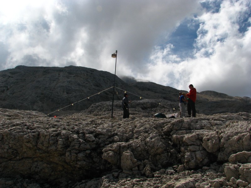 Salito da San Martino di Castrozza con la funivia del Rosetta abbiamo camminato per circa un'ora e mezza (zaini pesantissimi e 9 pali d'acciaio da portare) per arrivare a Busa di Manna (paesaggio davvero lunare), lì con Filippo, Stefano, Samuele ed Alessandro abbiamo installato le tre postazioni a quota 2546 m, 2560 m. e 2592 m. Giornata spettacolare anche se davvero calda per la quota e la stagione.