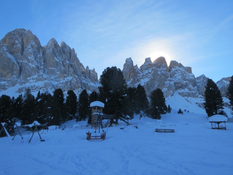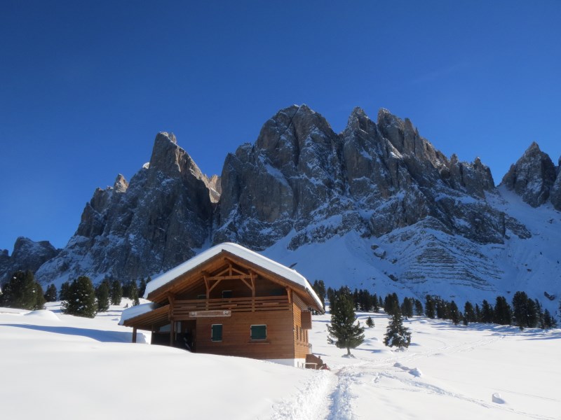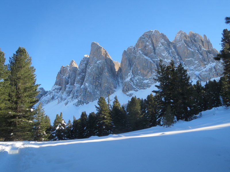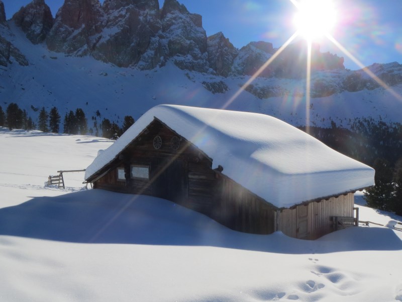 12/01/14 Val di Funes: da Malga Zannes a Geisleralm (rifugio Odle) e ritorno da Malga Dusler, dislivello 400 metri