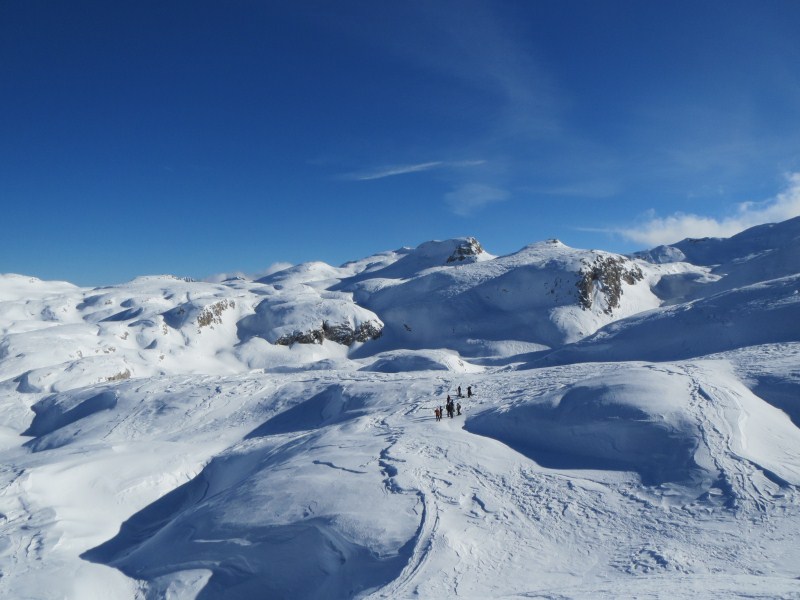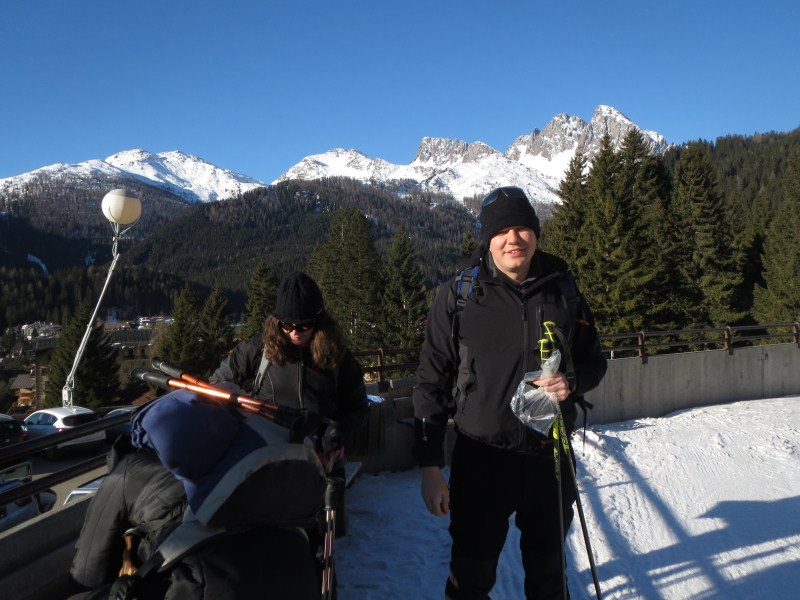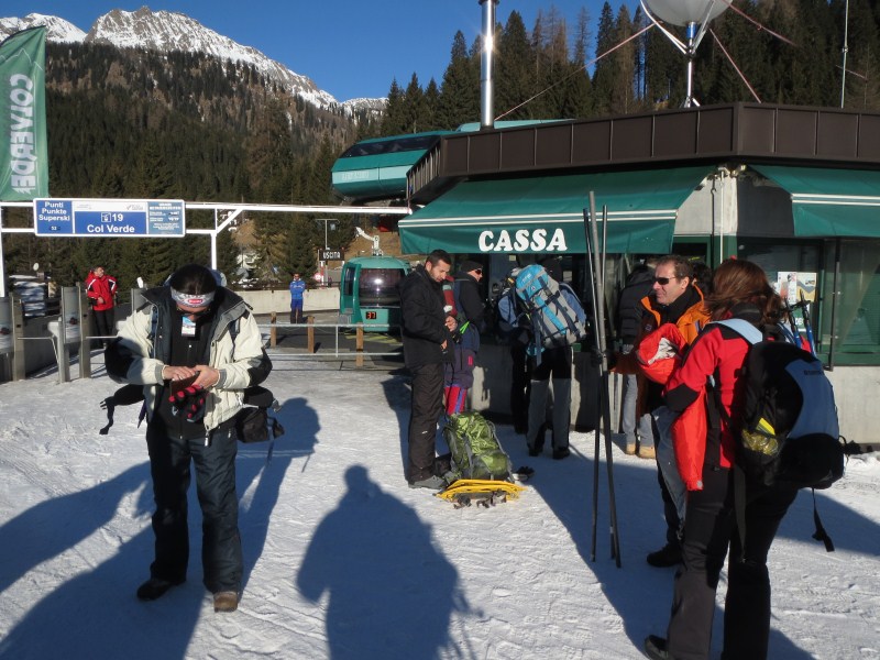 Alle sette, quasi tutti siamo in piedi, nevica da poco, ma la nevicata si intensificherà dalle nove in poi, alle 12.00 quando ripartiremo dalla funivia ci saranno circa 7 cm di neve fresca e polverosa al suolo, caduta con una temperatura di -8,8°C.