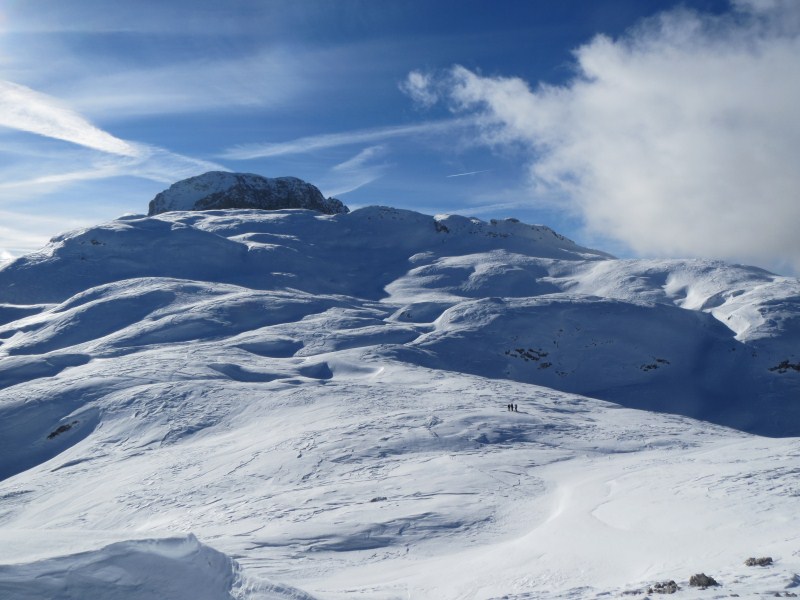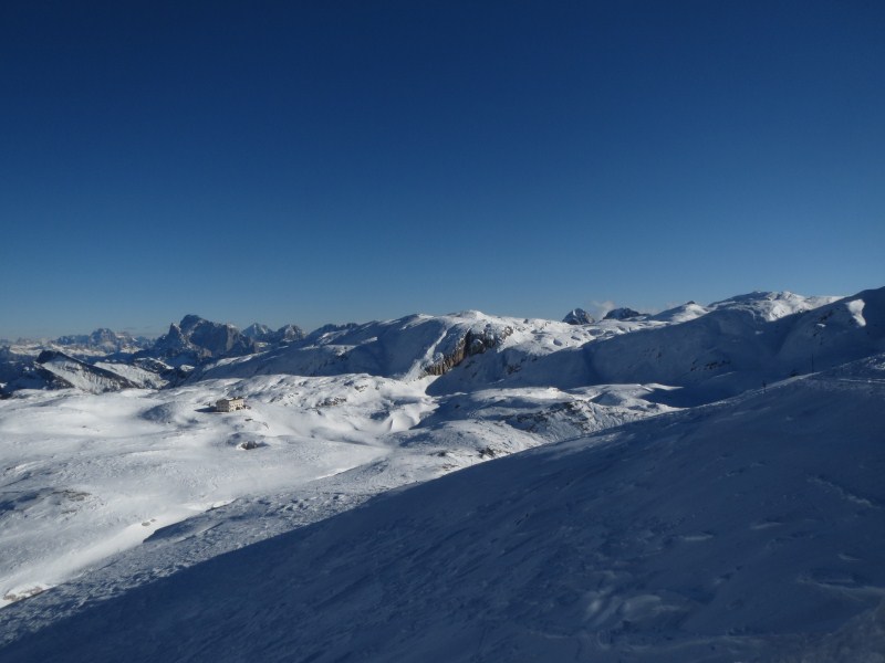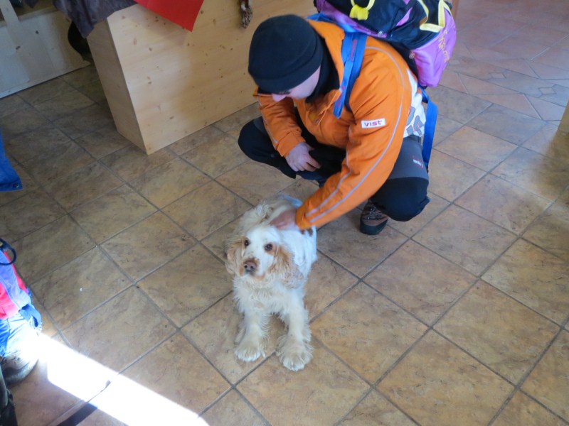 Partenza alle 10 di mattina del sabato dalla stazione a monte degli impianti del Rosetta, ci fermiamo dopo circa 20 minuti al Rifugio Pedrotti alla Rosetta, dove incontriamo i gestori Roberta e Mariano (con il mito Cocker Drago sempre simpaticissimo), ormai "amici" del nostro progetto di monitoraggio dei siti freddi dell'Altopiano (vedi http://doline.meteotriveneto.it ), lì lasciamo un po' di attrezzatura ed abbigliamento che non ci servirà per l'escursione di oggi.