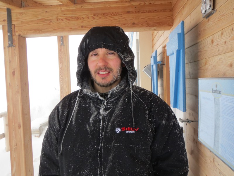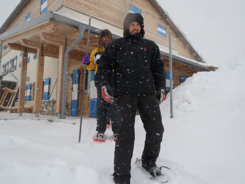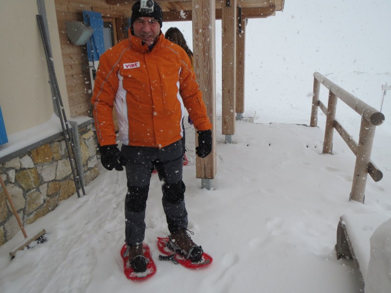 Alle sette, quasi tutti siamo in piedi, nevica da poco, ma la nevicata si intensificherà dalle nove in poi, alle 12.00 quando ripartiremo dalla funivia ci saranno circa 7 cm di neve fresca e polverosa al suolo, caduta con una temperatura di -8,8°C.