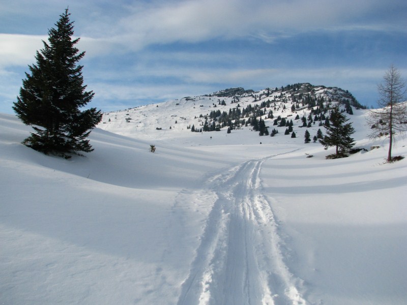 Escursione semplice con le ciaspole di 206 metri di dislivello, partenza da Malga Larici e arrivo dopo un'ora e dieci minuti. Ritorno in meno di un'ora.