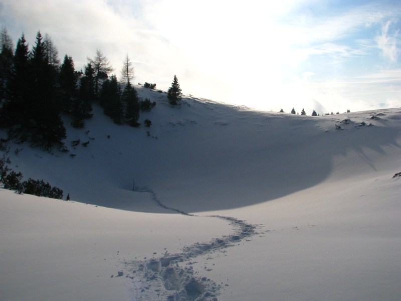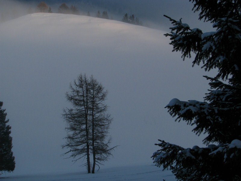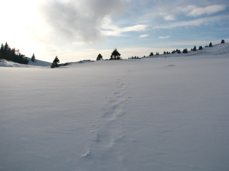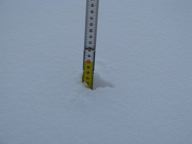 Neve al suolo in dolina 62 cm, temperatura alle ore 16.30 sul fondo -12,7°C e sulla sella -4,9°C.