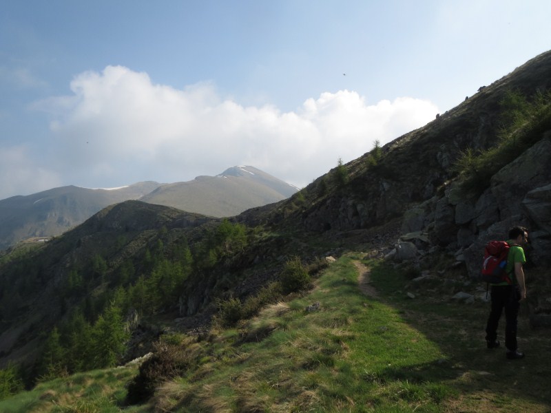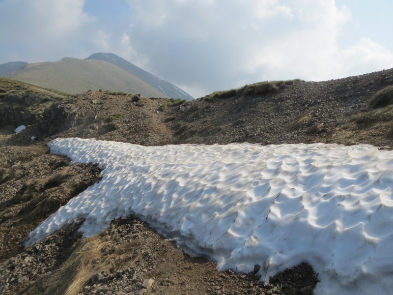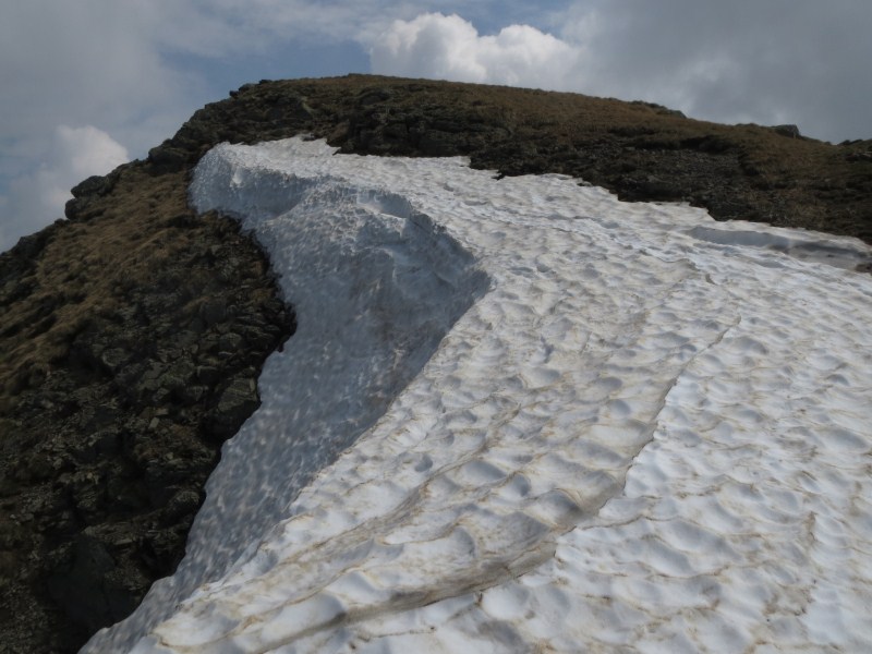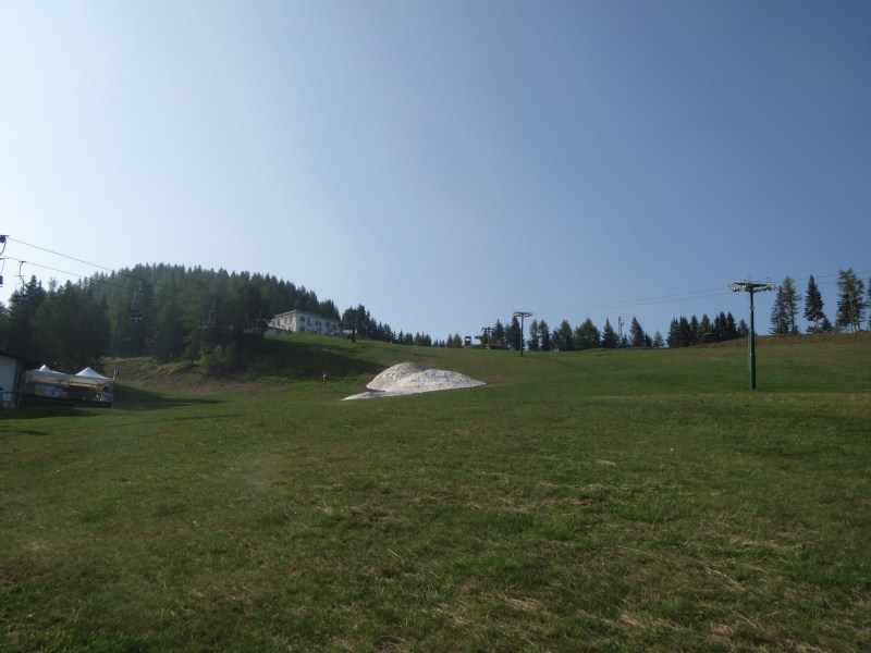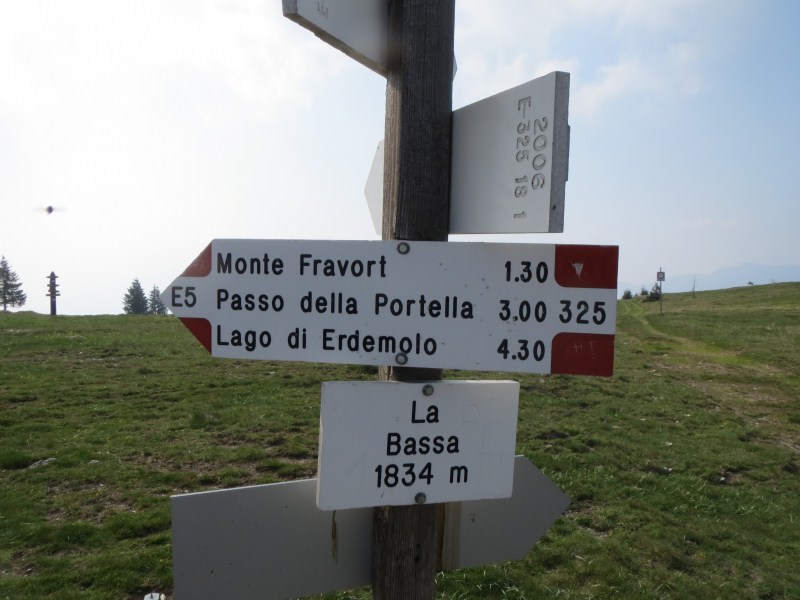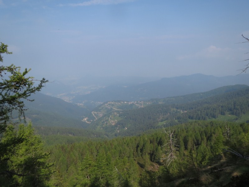 Dopo esserci ritrovati alle 08.00 (puntualissimi...) saliamo fino a Vetriolo per un cappuccino, alle 09.15 ci mettiamo in cammino partendeo dal parcheggio in Panarotta, siamo a quota 1770 metri circa (1782 è la quota del "rifugio Panarotta"). Sulle piste della Panarotta è presente ancora un enorme cumulo di neve (in parte sparata dai cannoni), saliamo senza passare dalla cima della Panarotta e raggiungiamo lo spiano chiamato "La Bassa" a quota 1834 metri, da lì si gode di ottima vista anche verso sud oltre che verso nord, peccato che la giornata sia calda e soprattutto che ci sia foschia e che si formino cumuli di bel tempo per convezione.