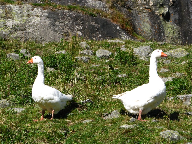 Al lago ci sono anche tre pescatori ma nella mezz'ora che rimaniamo lì non pescano nulla, anche se qualche pesce salta nell'acqua. Ripartiamo verso Est ed il sentiero sale dolcemente fino a quota 2147 metri per poi scendere alla Oberglanegg, una malga posta a quota 2060 metri (si si può arrivare a piedi in 10 minuti da uno dei tornanti che portano al Passo Rombo). Qui mangiamo ottimamente Knodel e Spiegeleier ed una torta alla ricotta. Dopo l'abbuffata scendiamo al parcheggio a riprendere l'auto.