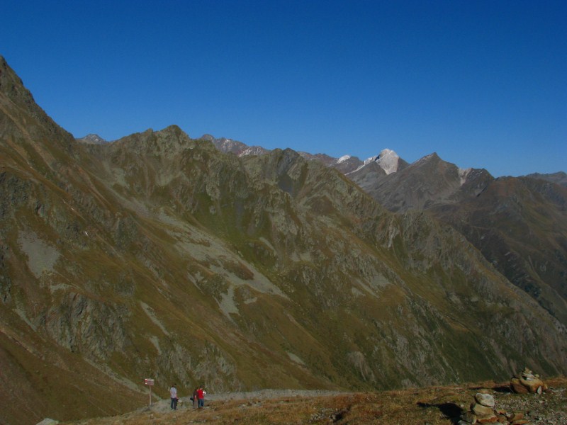 Saliamo anche a Passo Rombo a quota 2509 metri, ci stupisce l'asperità del paesaggio e la vista. Dal Passo riesco a vedere il Sassolungo e la Marmolada (sono 70 km in linea d'aria).