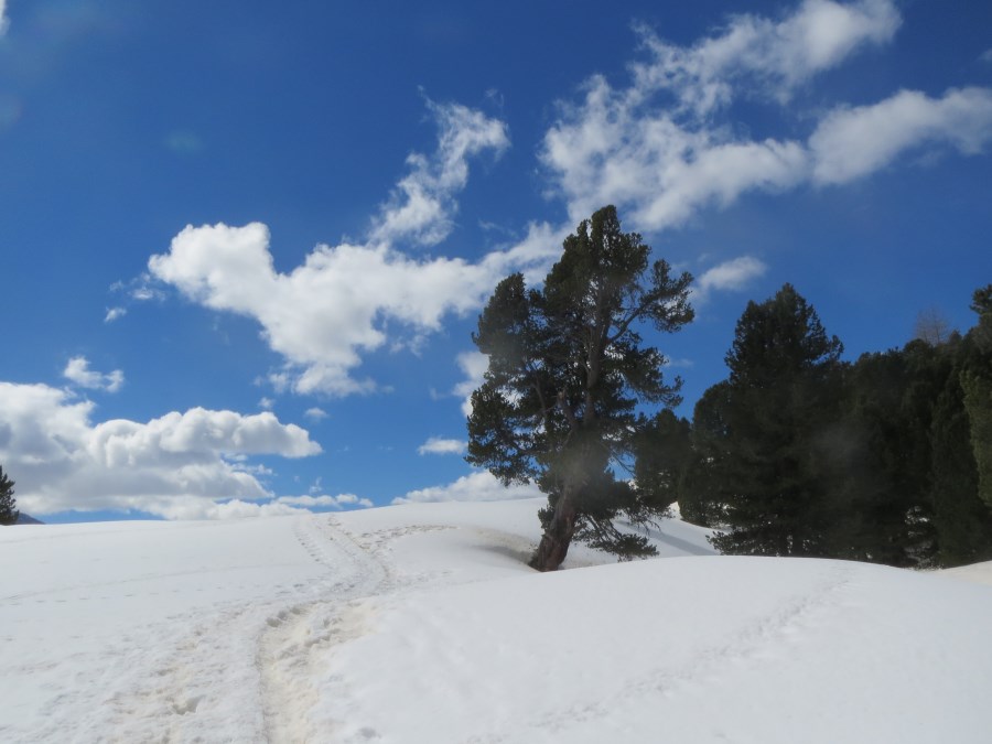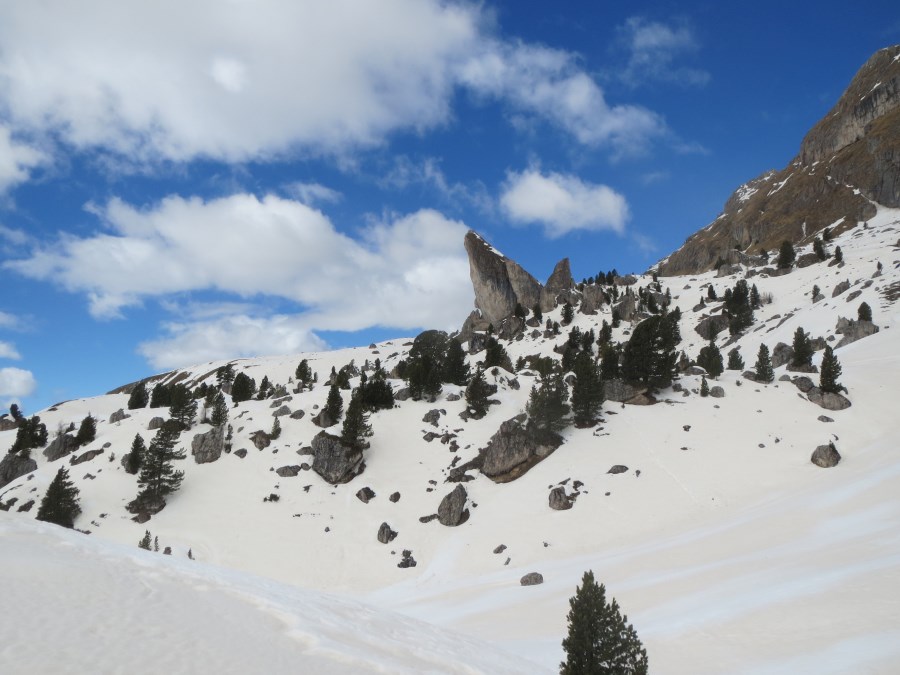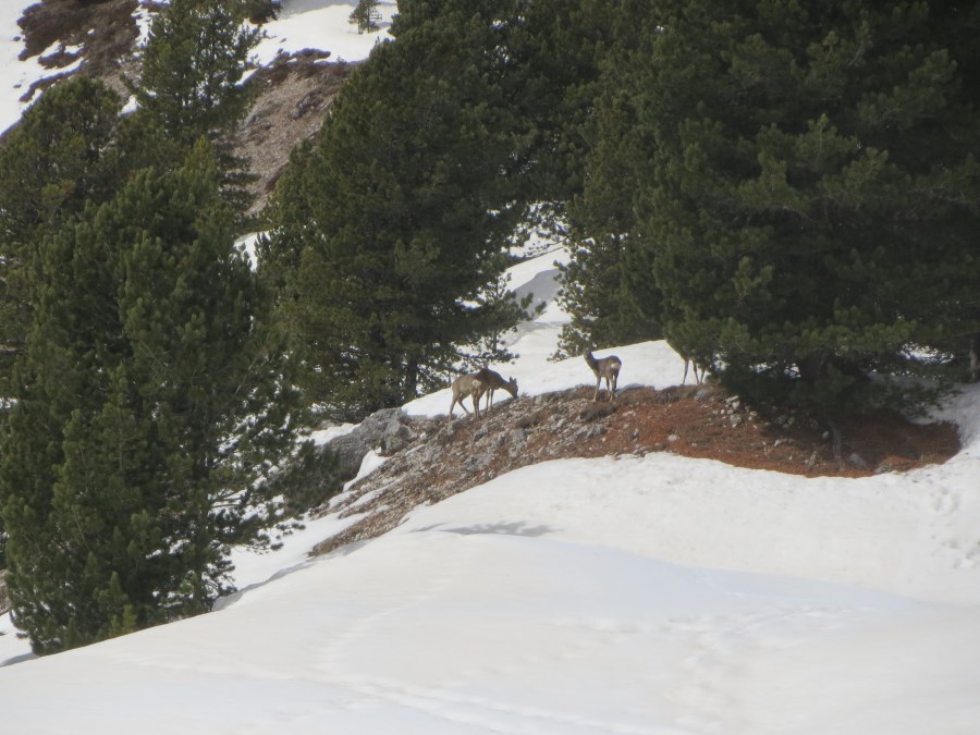 Con l'impianto che parte da Santa Cristina in Val Gardena siamo arrivati facilmente a quota 2070 metri, da lì verso nord con le ciaspole siamo arrivati ai piedi della Piccola e della Grande Fermeda, siamo passato sotto la Piera Longia ed abbiamo poi seguito il sentiero che d'estate porta alla ferrata del Sass Rigais. Da lì poi siamo rientrati scendendo verso il rifugio Firenze. Scendendo dalla Piera Longia abbiamo visto diverse impronte di capriolo fino a vederne finalmente 4 che brucavano la poca erba in mezzo alla neve sotto i cirmoli.