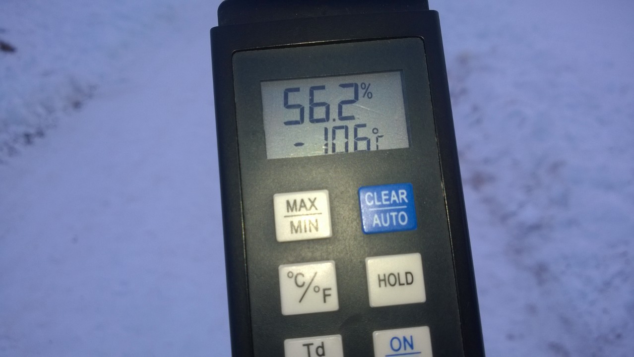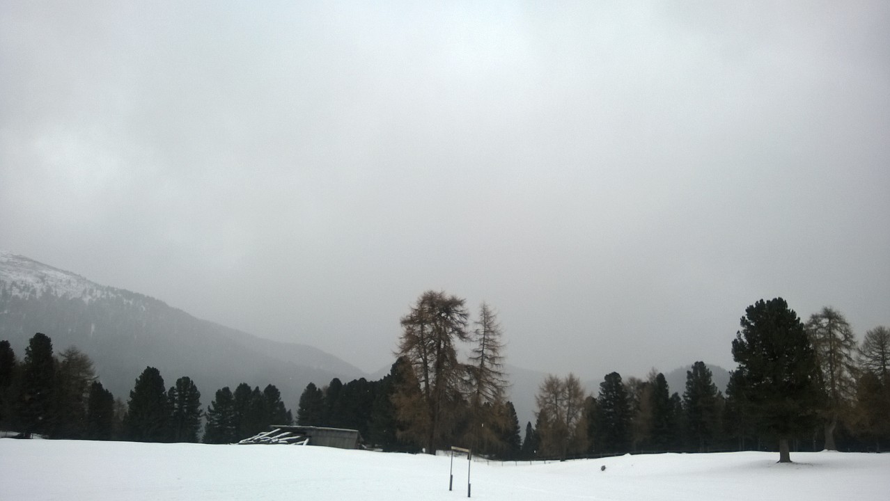 Una fredda (la più fredda...) domenica con temperature vicine ai -10°C a mezzogiorno, con un raro "sfondamento da nord" che ha portato nel giro di pochi minuti dal cielo sereno a nuvoloso con qualche fiocco di neve.