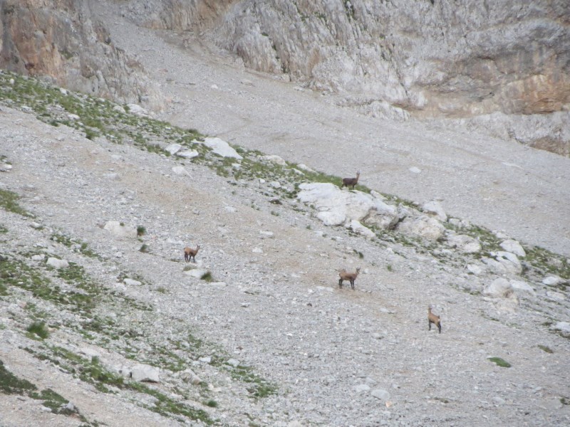 Raggiunta con l'auto Malga Movlina saliamo ad est verso la Val di Sacco, e dopo poco più di un'ora e mezza raggiungiamo la Busa di Sacco dove ci attende un bel gruppo di camosci.