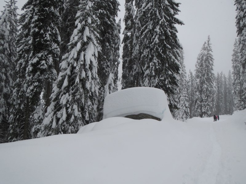 Partiti nel primo pomeriggio dal parcheggio posto nella piana che ospita la Zangola, raggiungiamo il rifugio con le ciaspole dopo un'oretta di cammino in tutta tranquillità (dislivello 155 metri circa). La nevicata ci accompagnerà per quasi 24 ore consecutive. La neve al suolo è pari a circa 2 metri e le foto ne sono testimoni.