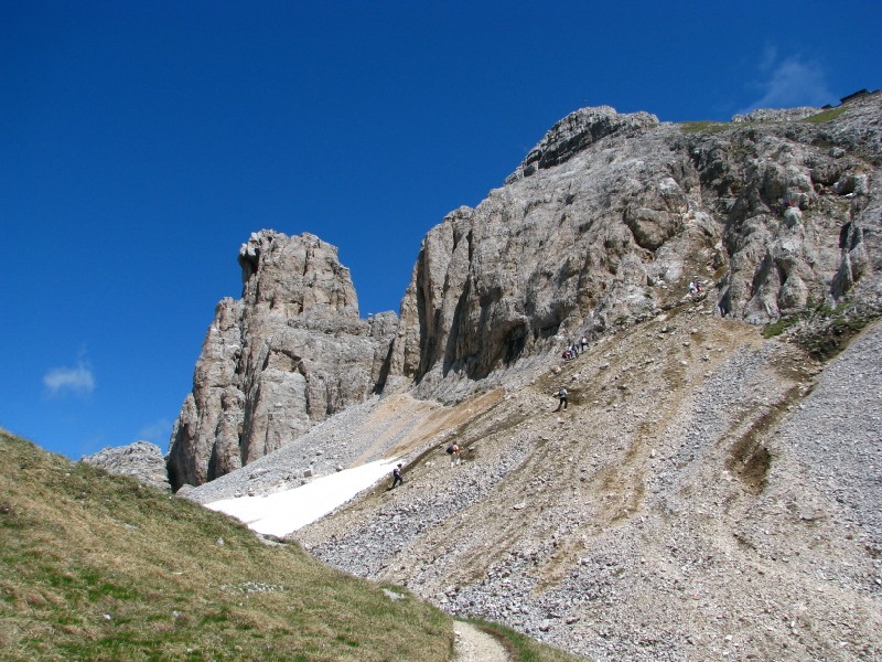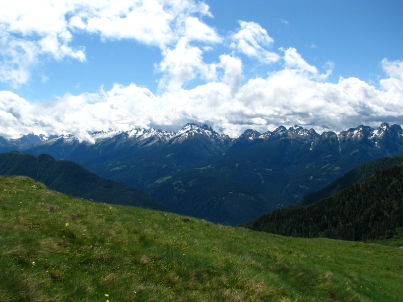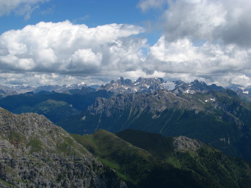 Finalmente una domenica di sole dopo tanta pioggia, partenza non troppo presto alla volta di Predazzo (Letizia, Enrico, Carlotta e Giampaolo), dove grazie all'inaugurazione del nuovo parco tematico al Gardoné saliamo gratuitamente fino a Passo Feudo a quota 2200 metri. Da lì saliamo, questa volta a piedi ai 2671 metri del Rifugio Torre di Pisa, Da lì godiamo di una vista eccezionale partendo da est ad ovest: Latemar, Tofana di Rozes, Sella, Marmolada, Pale di San Martino, Lagorai, Tre Cime del Bondone, Paganella, Gruppo di Brenta, Gruppo Ortles Cevedale. Pranzo al rifugio dove alle 14.30 godiamo anche di una breve nevicata (graupeln), dopo una bella siesta alle 15.30 iniziamo a scendere per rientrare a passo Feudo e poi a Predazzo.