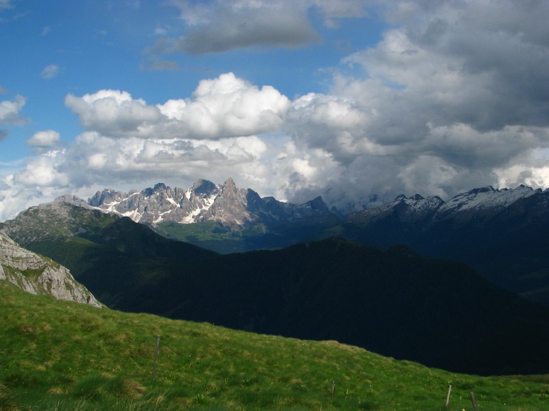 Finalmente una domenica di sole dopo tanta pioggia, partenza non troppo presto alla volta di Predazzo (Letizia, Enrico, Carlotta e Giampaolo), dove grazie all'inaugurazione del nuovo parco tematico al Gardoné saliamo gratuitamente fino a Passo Feudo a quota 2200 metri. Da lì saliamo, questa volta a piedi ai 2671 metri del Rifugio Torre di Pisa, Da lì godiamo di una vista eccezionale partendo da est ad ovest: Latemar, Tofana di Rozes, Sella, Marmolada, Pale di San Martino, Lagorai, Tre Cime del Bondone, Paganella, Gruppo di Brenta, Gruppo Ortles Cevedale. Pranzo al rifugio dove alle 14.30 godiamo anche di una breve nevicata (graupeln), dopo una bella siesta alle 15.30 iniziamo a scendere per rientrare a passo Feudo e poi a Predazzo.