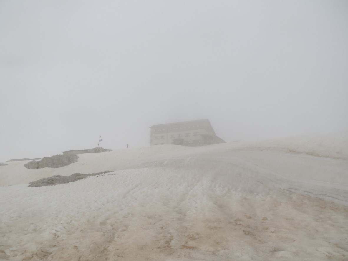 Un camoscio ci ha fatto una sopresa in mezzo alla nebbia, nella dolina sotto il rifugio, purtroppo non siamo riusciti ad immortalarlo.
