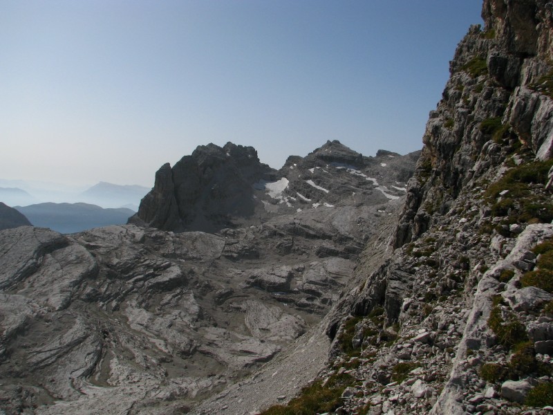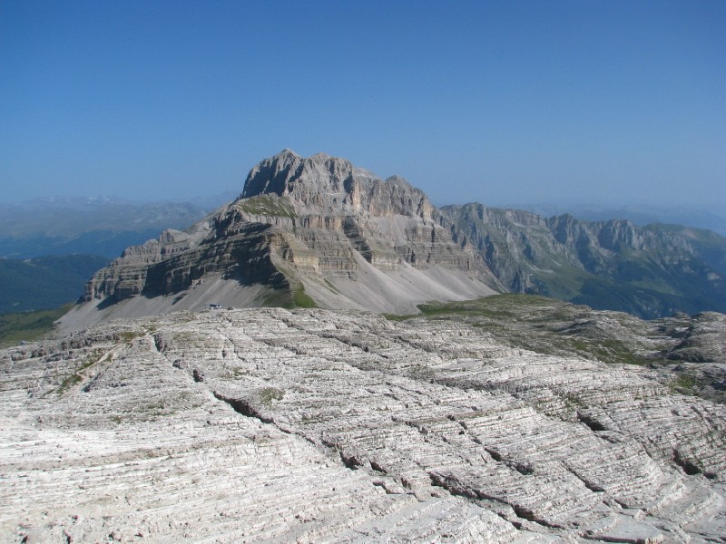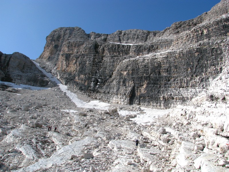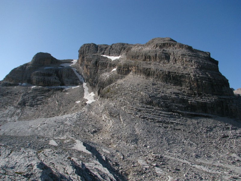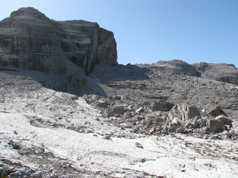 Escursione che prevedeva circa 400 metri di dislivello (alla fine ne abbiamo fatti solo 300) modificata in "corso d'opera" visto che dovevamo salire sulla Cima Roma a quota 2887 metri ma non siamo riusciti a "trovare" il sentiero, ad ogni modo essere saliti fino ai 2680 metri dell'attacco del sentiero Benini (già fatto alcuni anni fa per salire sulla Cima Falkner) è stato ugualmente interessante soprattutto per il panorama verso ovest (dal Caré Alto al Cevedale) e verso Est (qui maggiore foschia ma si vedevano tutte le cime intorno a Trento, ma soprattutto per la giornata splendida senza nuvole, particolarmente calda anche in quota.