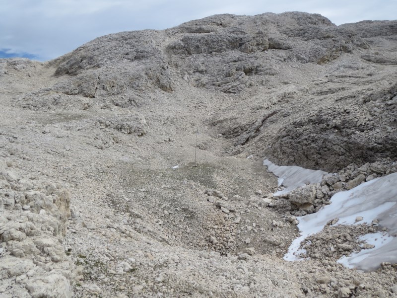 Riprendiamo quindi la via del ritorno, muniti di un certo peso dei vari pali tolti. Con Stefano scendiamo a Busa di Roda per l'ultimo posizionamento dei sensori.