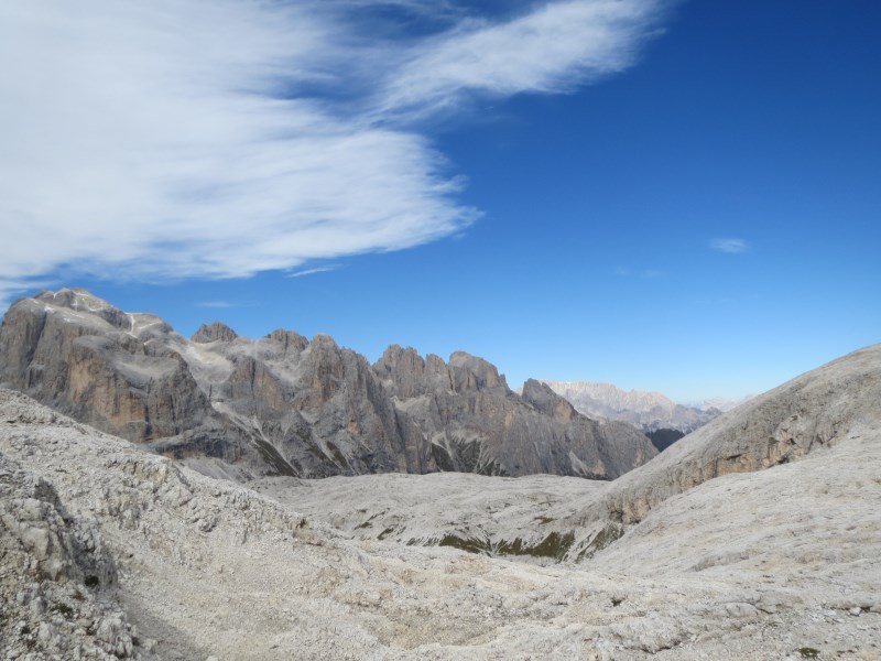 Il cielo è talmente limpido che riusciamo a vedere il Carè Alto, il Cevedale, il Gran Zebrù, l'Ortles e dall'altra fino alle Tre Cime di Lavaredo e fino al Grosslochner, spettacolare.