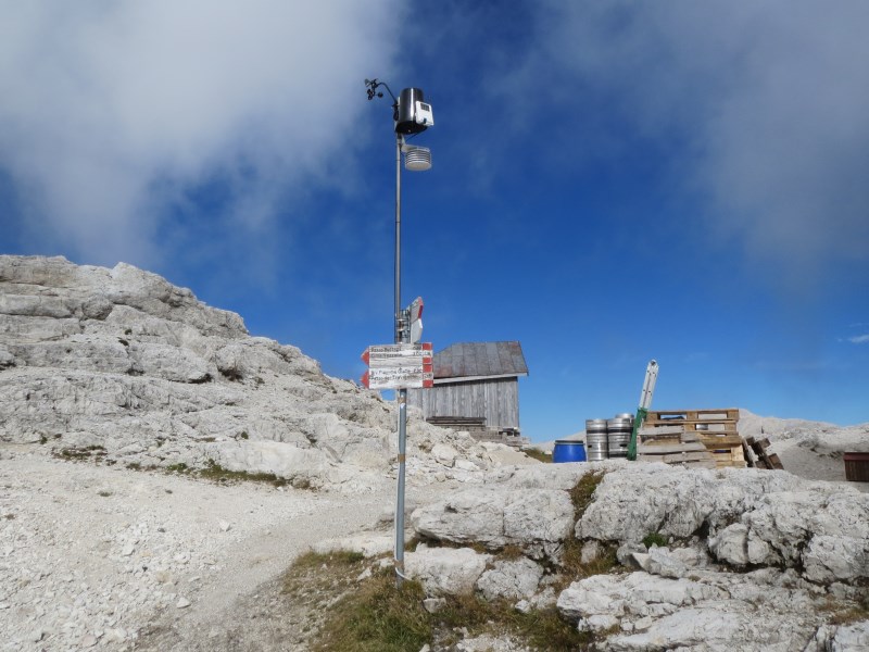 Partenza da Levico alla volta delle Pale di San Martino alle 07.30, raggiungiamo il rifugio Rosetta alle 09.50, dopo che Guy ha fatto la "sua prima volta" sulla velocissima e strapiombante funivia del Col Verde Rosetta. Al rifugio troviamo l'amico Stefano all'opera con il progetto che abbiamo pensato lui ed io insieme all'amico Filippo di Meteo Triveneto, ovvero installare una stazione in quota collegata ad un sensore posto sul fondo di una frost hollow, e questo sogno a breve si realizzerà,