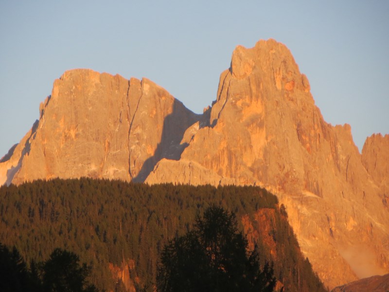 Riprendiamo dopo le ore 18.00 la via di casa, dopo esserci fermati ad ammirare il tramonto sulle Pale al Lusia ed a Bellamonte, l'Enrosadira è sempre spettacolare.