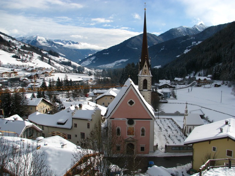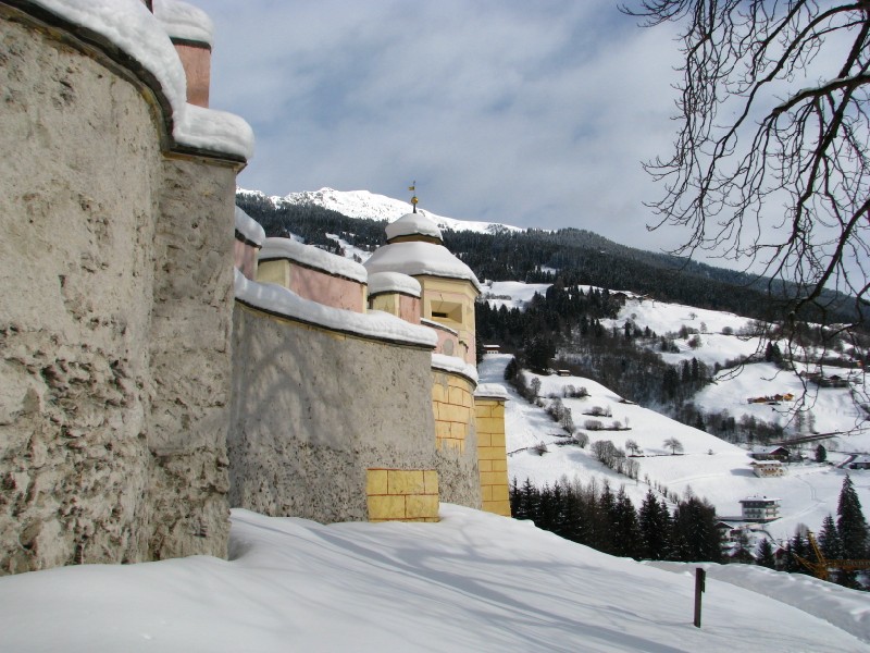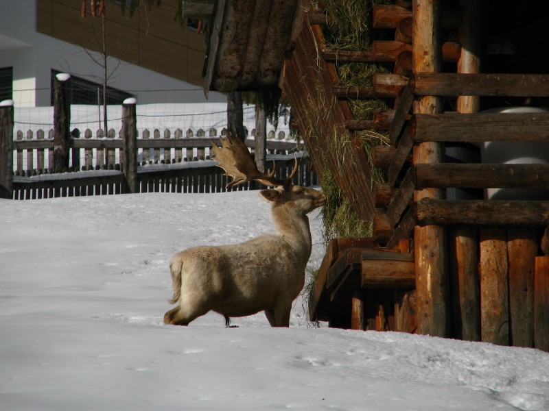 La mattina escursione ai 1050 metri di Mareta in Val Ridanna, dove abbiamo percorso il sentiero "Bosco e acqua", lungo circa 1 km, con un dislivello di circa 60 metri porta al Castello Wolfsthurn dove si trova il Museo della caccia e della pesca. La passeggiata lungo il sentiero immerso in un bosco e soprattutto nella neve, con a fianco un bellissimo corso d'acqua è suggestiva. Arrivati in cima alla salita si possono ammirare dei daini in un recinto (direi che sono daini albini). Il castello appartenente ad una famiglia di nobili austriaci domina la valle ed il paese di Mareta.