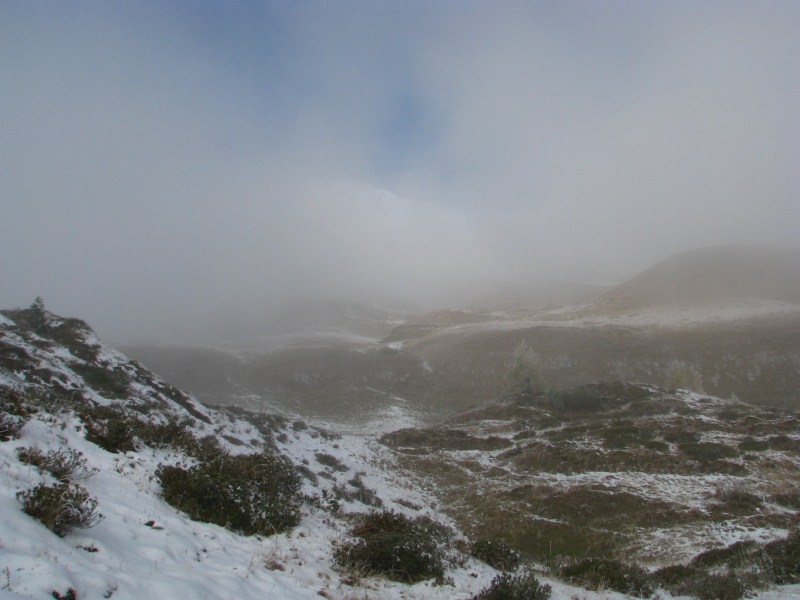 Sono salito sabato mattina presto, temendo di non poter salire a causa della recente nevicata di giovedì, in realtà come si vede dalle foto, la neve era superiore solo in alcuni posti ai 7 cm. Temperatura di -4°C alle 09 e che è rimasta praticamente costante tutto il giorno, visto che era ancora a -3,5°C alle 15 quando sono ripartito, questo a causa delle nebbia (nubi basse) che sono insistite sulla zona tutto il giorno (evidente galaverna su molti alberi).