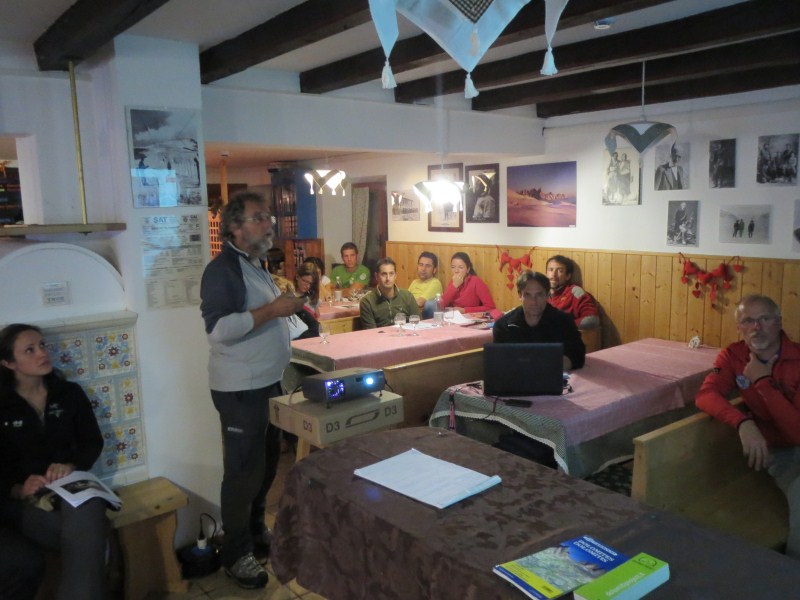 Dopo l'aperitivo offerto dalle Cantine Ferrari di Trento ed un'ottima cena, all'introduzione da parte di Mariano Lott e del Presidente delle guide alpine di San Martino (Narciso Simon) ha fatto seguito la serata culturale che ha visto diversi interventi, così articolati: