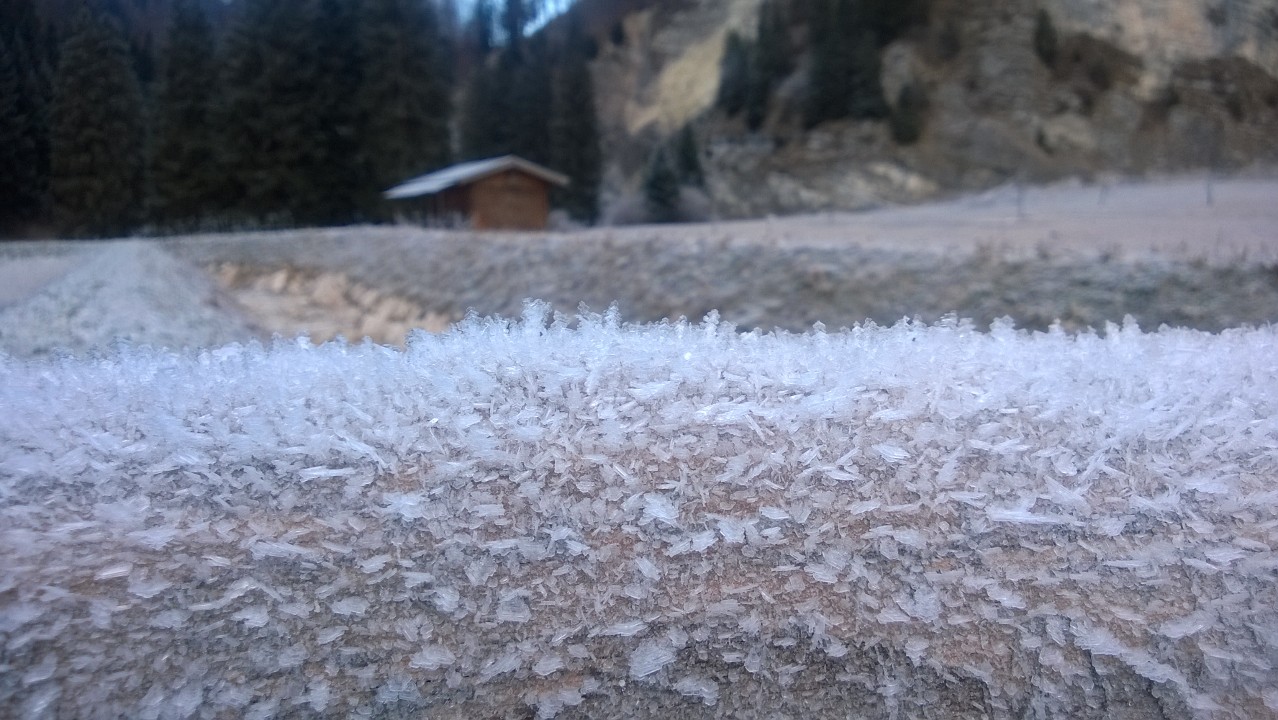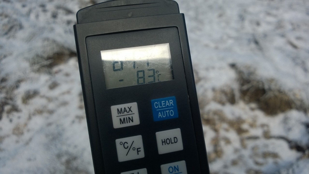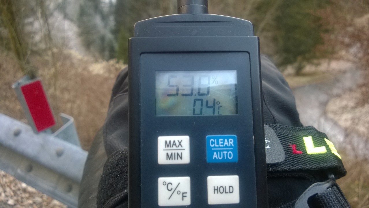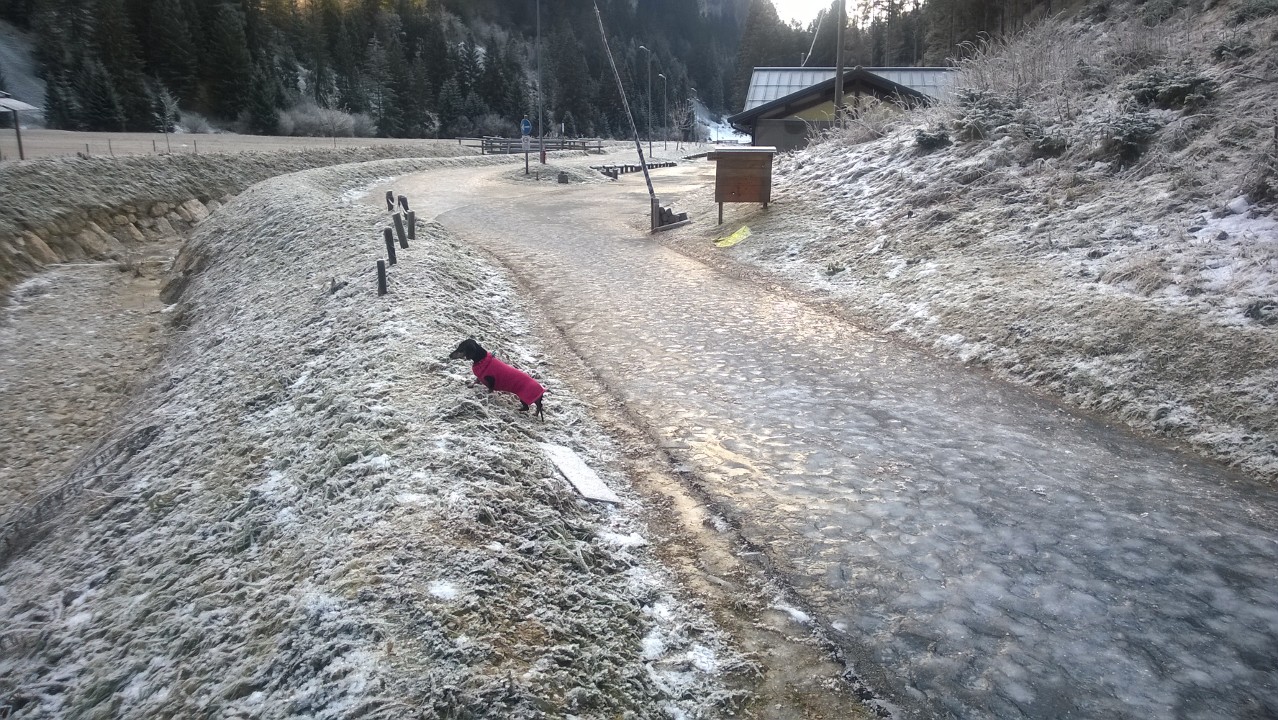 Partenza dal parcheggio a +0,4°C ed arrivo sul fondo con -8,4°C (a mezzogiorno).