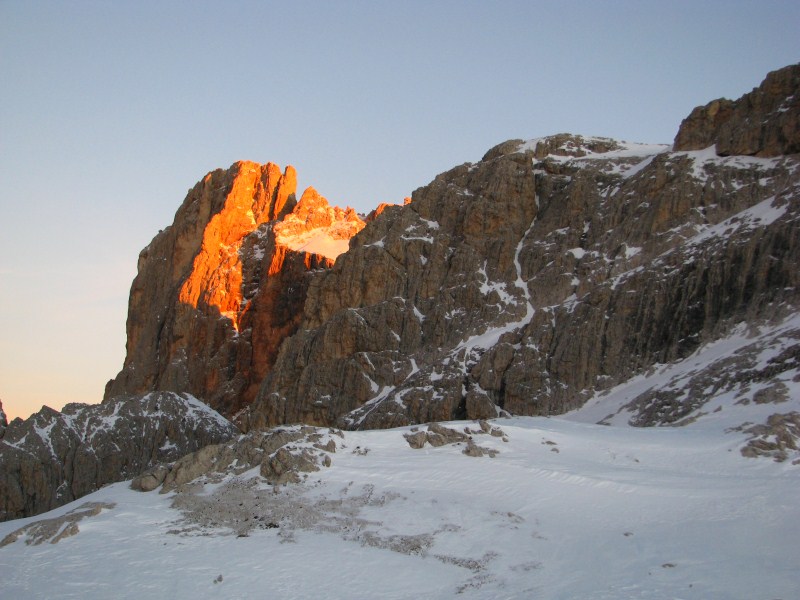Dopo una notte tranquilla in rifugio,  ci alziamo molto presto per ammirare una splendida alba, i colori delle Dolomiti all’alba ma ancor di più al tramonto (con l’Enrosadira) sono incredibili.