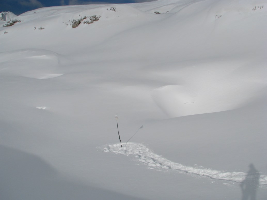 Dapprima abbiamo sistemato la stazione collegata via satellite sul web posta nella conca sotto il rifugio Rosetta e poi abbiamo fatto il giro fino a Busa di Manna per sostituire i datalogger posti nelle "frost hollow" dell'Altopiano.