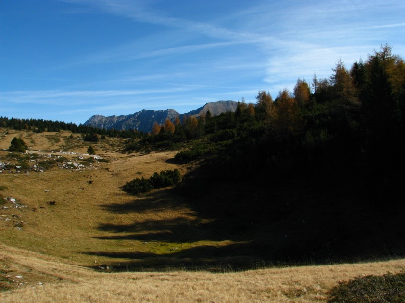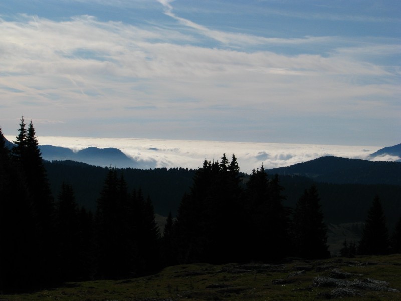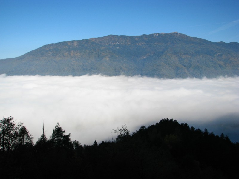 Breve escursione (in concomitanza con l'installazione del termometro alla Dolina Fondi di Campo Manderiolo) in una giornata autunnale (nebbia e nubi basse sono tipiche di questo periodo, con situazione di forte umidità, inversione termica ed alta pressione) alquanto suggestiva. Partenza da Levico Terme in mezzo ad una fitta nebbia, sbucato dalla nebbia una giornata spettacolare, piuttosto mite la temperatura, passando da Passo Vezzena e prendendo la strada che passa da Malga Marcai sono arrivato al confine tra Trentino e Veneto, da lì sono salito dapprima ai Fondi di Campo Manderiolo dove ho installato il datalogger per la prossima stagione di monitoraggi nell'ambito del progetto "doline e siti freddi" di Meteo Triveneto, Dopo l'installazione sono salito ai 1863 metri dello Spigolo dei Fondi, da lì una vista panoramica su Cima Portule sulla Pianura Veneta dove grazie alla nebbia si vedeva uno spettacolare mare di nubi, verso ovest vista verso le Tre Cime del Bondone, il Palon e sullo sfondo le cime alle pendici dell'Adamello (Cop di Breguzzo).