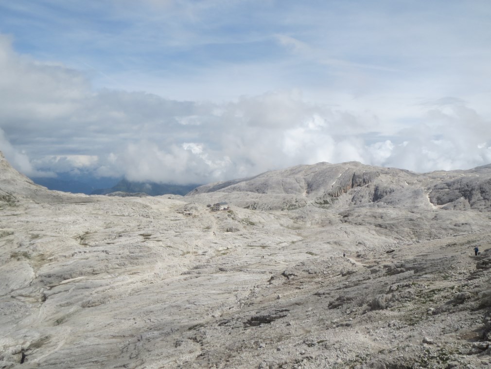 Dopo una buona cena, andiamo a letto e ci alziamo la mattina intorno alle sei, con un tempo discreto, dopo colazione partiamo alla volta del “giro delle doline”. Saliamo a Busa di Roda a raddrizzare i pali e inserire il nuovo sensore per la stagione 2014/2015, scendiamo poi alla Sella per fare lo stesso lavoro e poi saliamo nel Paradiso lunare di Riviera di Manna, che ogni volta mi lascia a bocca aperta.