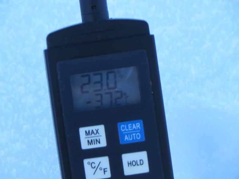 La giornata è una di quelle indimenticabili perché caratterizzata dalla perfezione delle condizioni che portano a verificarsi il fenomeno dell'inversione termica nei siti freddi (principalmente: cielo sereno, assenza di vento, bassa umidità, neve fresca al suolo), trascorreremo gran parte della mattina con temperature comprese tra i -25°C e i -41°C.