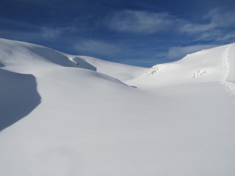 Ripartiamo alla volta degli altri siti monitorati, la dolina Busa di Roda, la Sella di Manna, e Busa di Manna 1 e 2, in quest'ultima la minima della notte (poche ore prima che arrivassimo noi) è stata di -46,4°C, quando scendiamo noi nella conca la temperatura è ancora a -41°C.