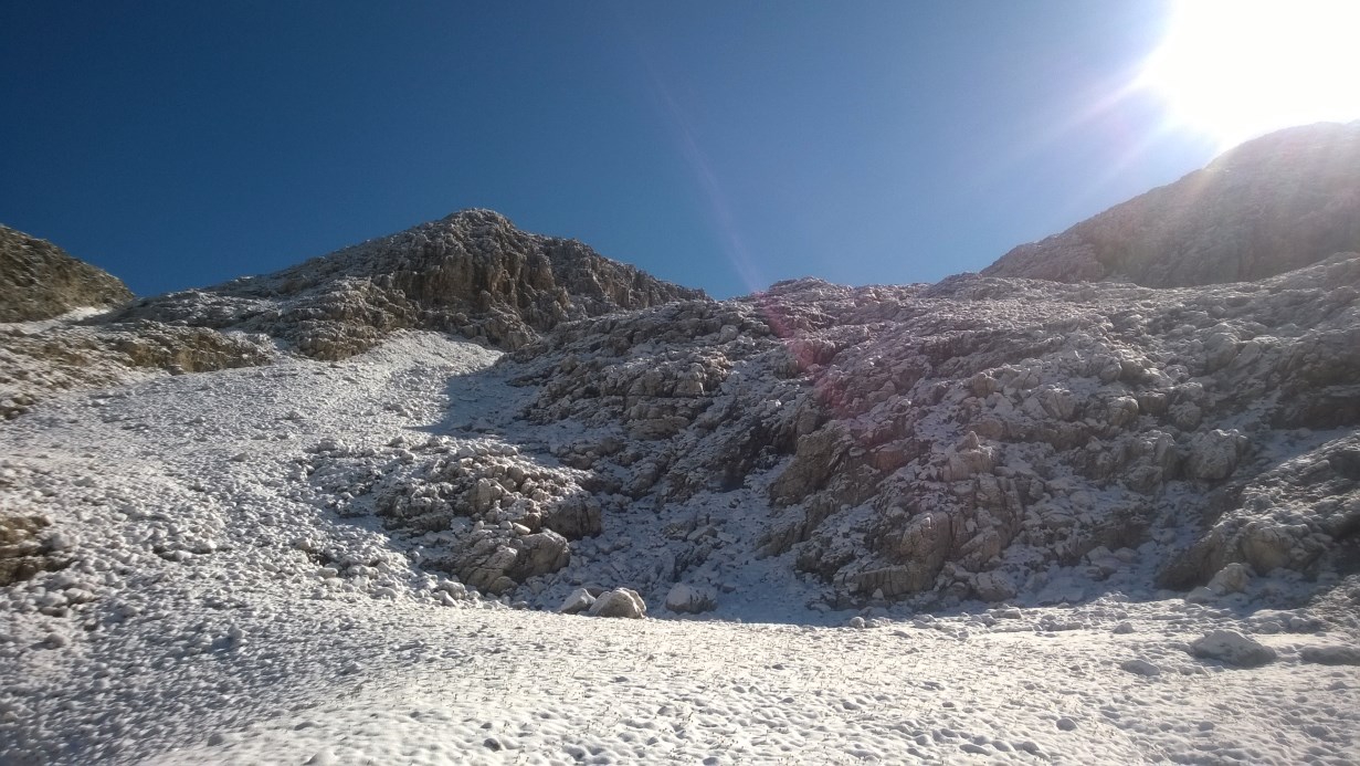 Domenica abbiamo fatto 625 metri di dislivello, partendo dal Rifugio Rosetta per andare a Busa di Manna, Busa Fradusta, ghiacciaio e lago della Fradusta, passo di Pradidali e nuovamente rifugio Rosetta.