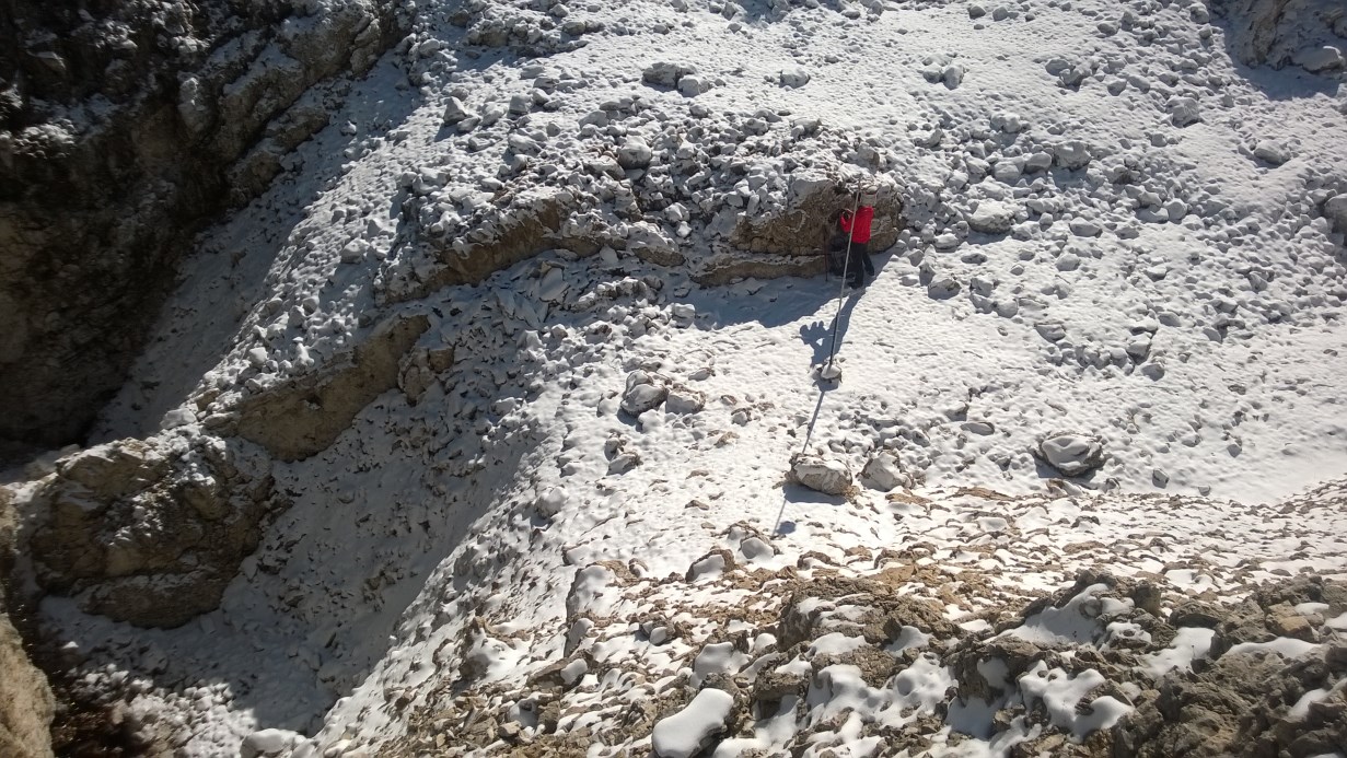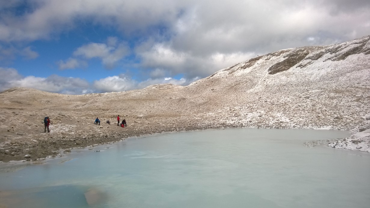 Giornata di sabato dedicata a sistemare la stazione meteo al Rifugio Rosetta e ad una breve escursione fino al sito freddo di Busa di Roda, il tutto sotto una pioggia intermittente e dei graupel.