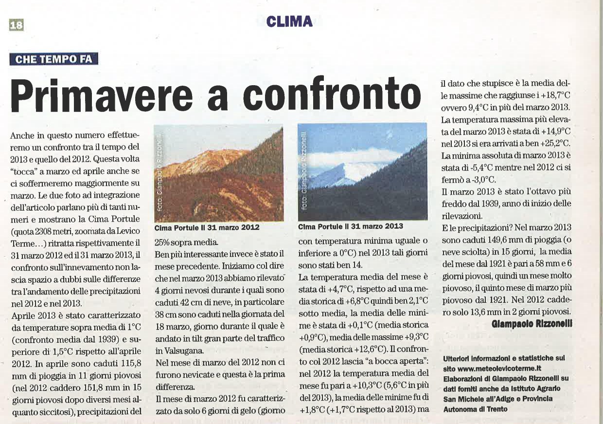Articolo che confronta la prima parte dell'arida primavera 2012 con quella del 2013, interessanti le foto di Cima Portule scattate il 31/03 dei due anni, impietoso il confronto tra la neve assente del 2012 ed i "metri" del 2013.