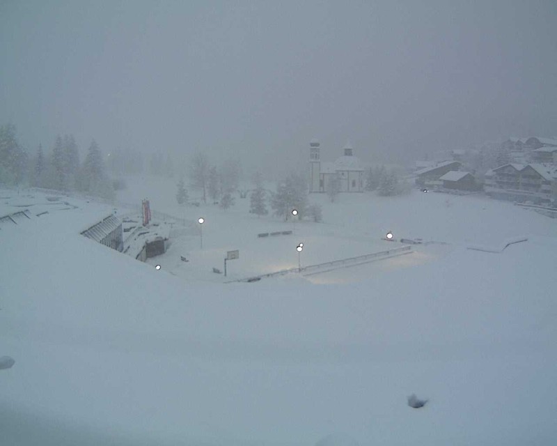 una perturbazione proveniente da nord sta portando forti precipitazione nevose in Austria (vedi foto della webcam di Seefeld questa mattina, qui sotto), eloquente l'immagine del satellite.