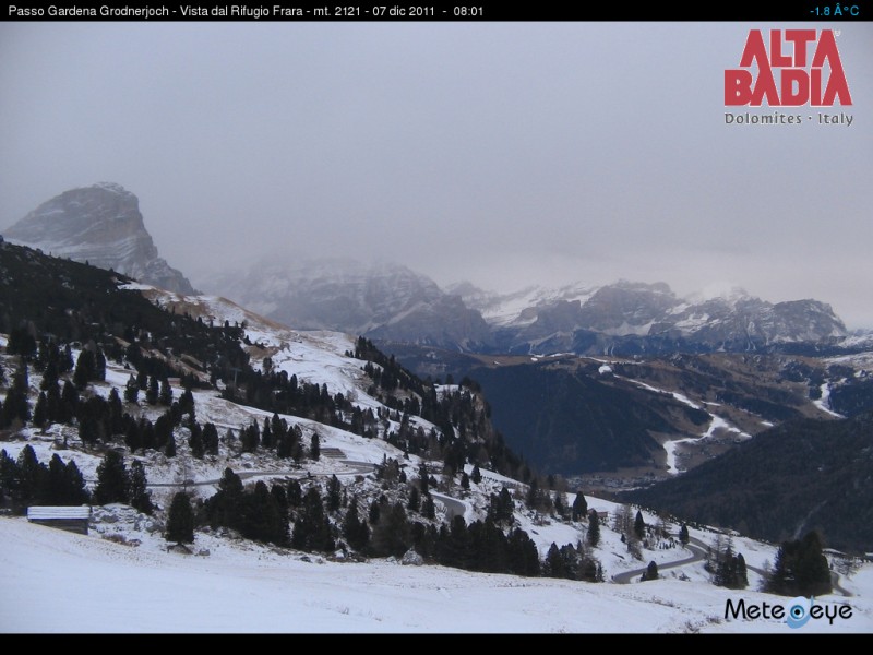 La perturbazione tenta anche di sfondare portando precipitazioni in Val Pusteria ed in Val Badia (vedi foto di questa mattina in Val Gardena).