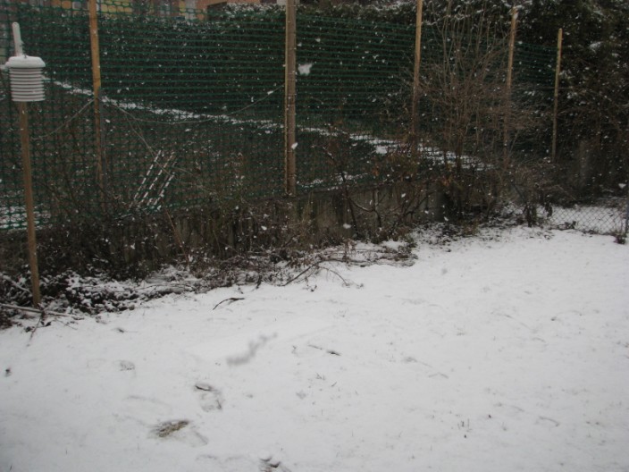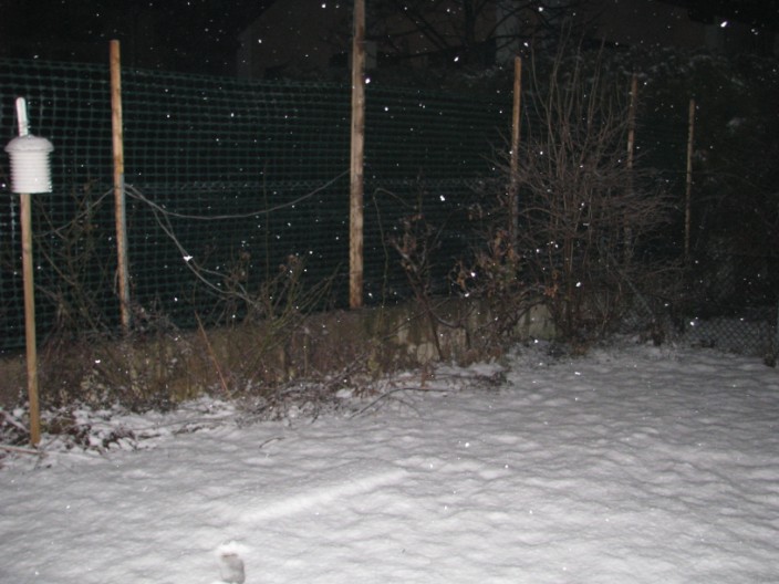 La neve molto bagnata ha continuato a cadere tutto il pomeriggio, la sera col calo della temperatura, la neve si è fatta più fitta ed asciutta, l'accumulo al suolo alle ore 19.30 è di 6 cm.