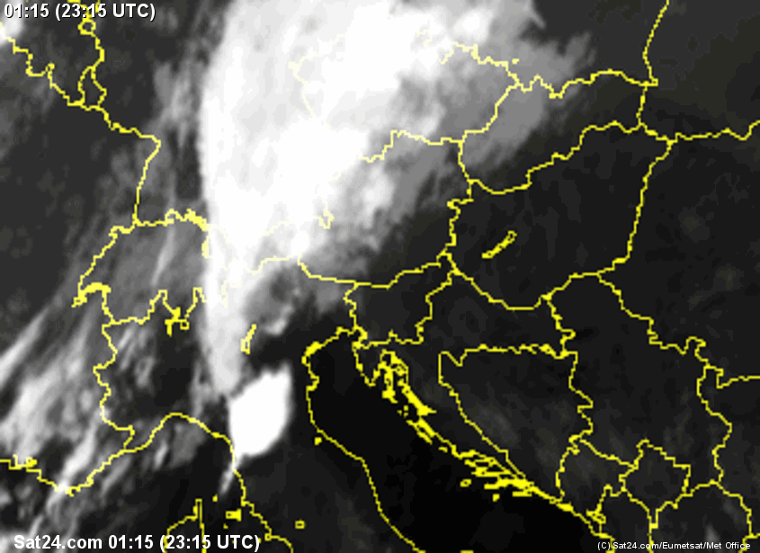 Questa notte solo vento a Levico Terme, le immagini qui sotto riportate evidenziano come i temporali all'una di notte interessassero solo la parte nord ovest del Trentino e soprattutto dell'Alto Adige.